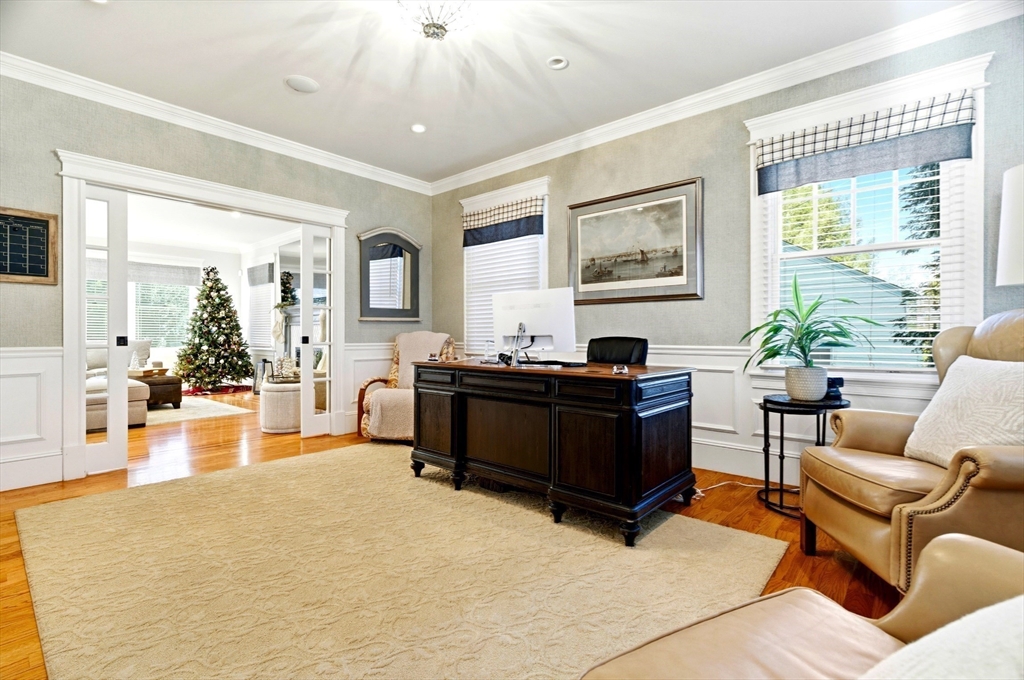 This exquisite custom-built Colonial blends timeless charm with sought-after neighborhood living. Set on a flat lot with large backyard, this 4,805 square-foot home is located in one of Newton’s most desirable neighborhoods and offers an easy Boston commute with convenient access to I-95/128, the Mass Pike, and Route 9. This home features 5 beds, 4.5 baths, and 4 finished levels, along with an oversized 2 car garage and a generous patio.The main level offers a chef’s kitchen with dining area and patio access, a separate formal dining room, a spacious living room with fireplace, and a half bath. The third level features four sun-filled bedrooms and three full baths, including a primary suite with walk-in closet and spa-like bath. The fourth floor offers an additional bedroom/en-suite bath, home office, and playroom. The first level includes an exercise room and full bath. Filled with natural light, this home showcases an open floor plan and elegant details throughout.