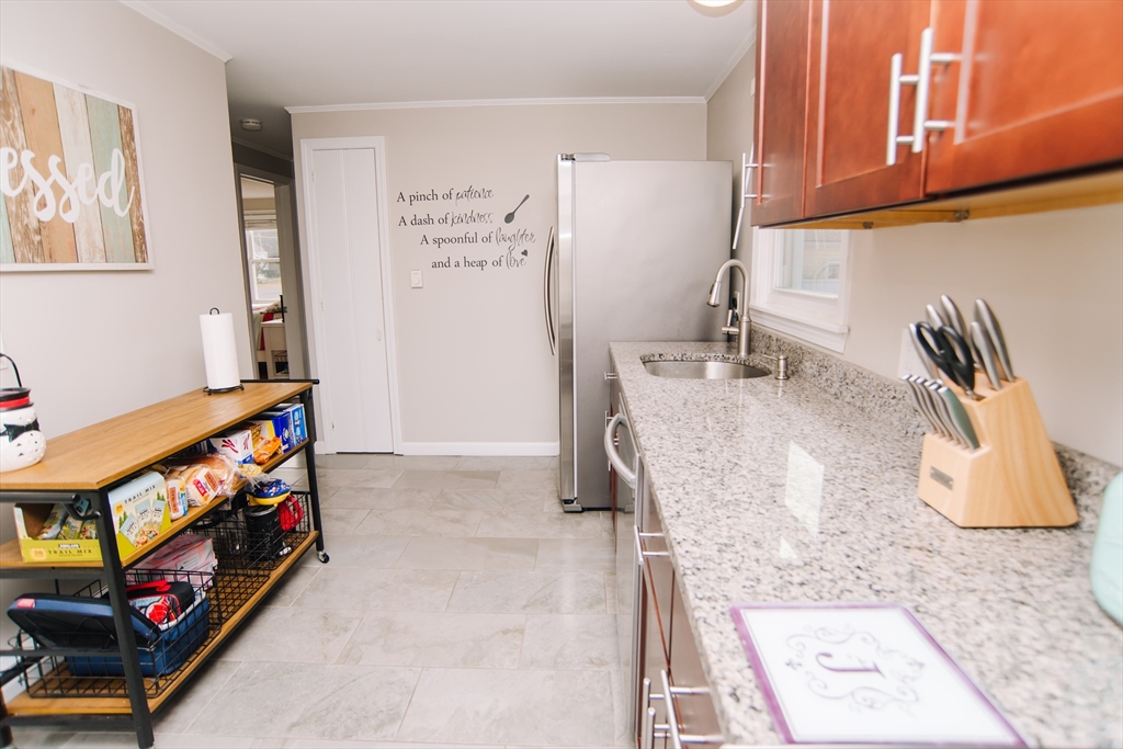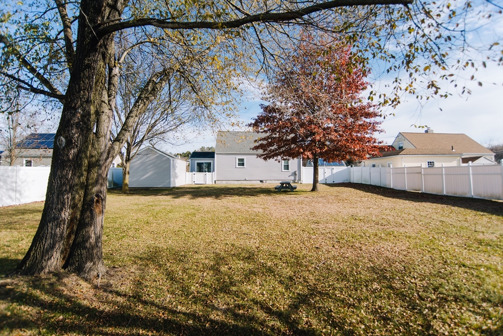 Discover privacy and perfection at 22 Amanda St, tucked away on a quiet dead-end street in Springfield. This updated Cape boasts serious curb appeal with a newer roof and freshly installed siding (2025). The main level features hardwood floors throughout the bright living room, formal dining room, and two bedrooms. You’ll love the modern kitchen equipped with granite counters, stylish cabinetry, and stainless steel appliances. A sliding glass door connects the dining area to a large, flat backyard fully enclosed by vinyl fencing—perfect for pets or summer BBQs. The second floor offers a huge, carpeted third bedroom with endless potential. A clean, dry basement with washer/dryer hookups and a detached 1-car garage round out this incredible home. Schedule your showing today before it’s gone.