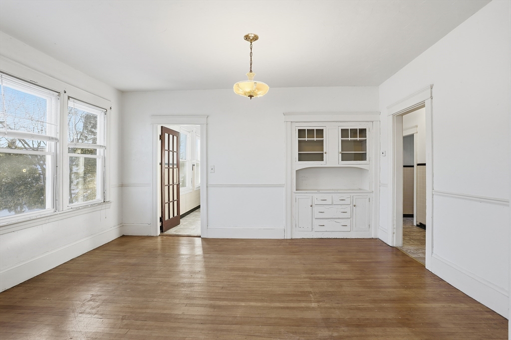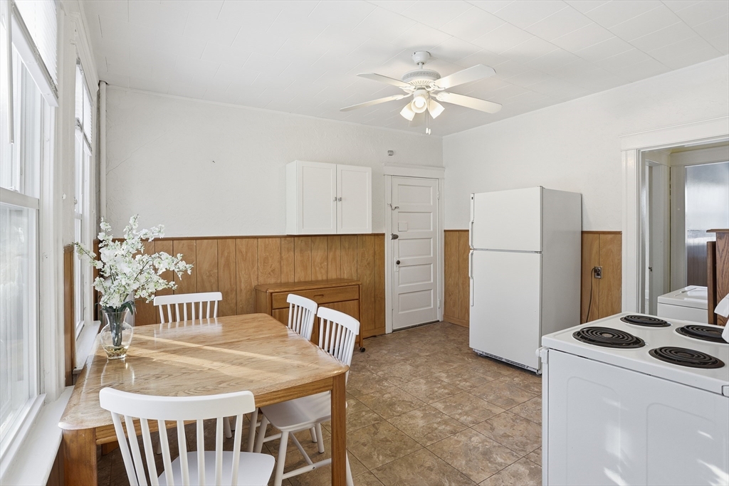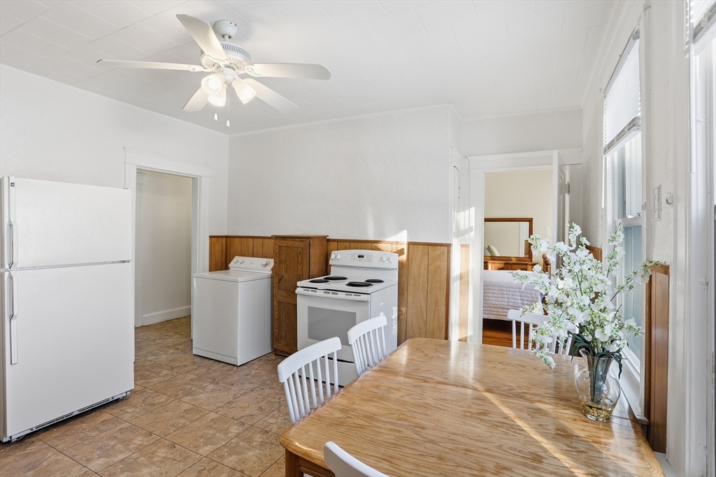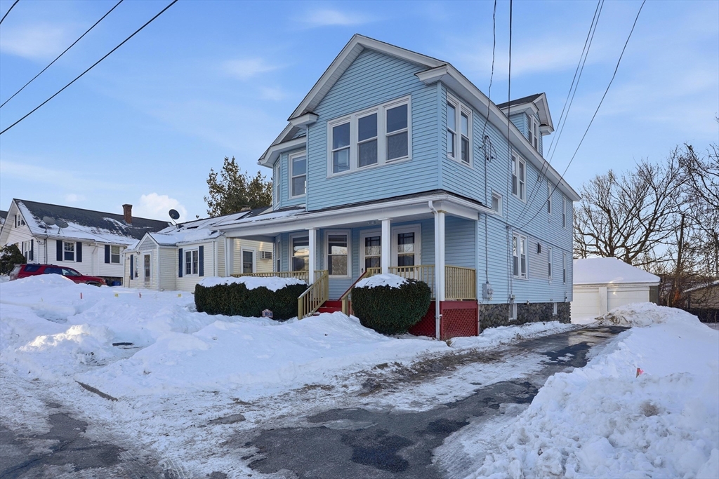 A welcoming covered porch introduces this much-loved two-family home, held by the same family for more than two decades. Set on a quiet neighborhood side street with easy highway access, the property offers an appealing blend of comfort, convenience, and long-term potential. Low-maintenance vinyl siding and hardwood floors throughout provide a solid foundation for future updates. Each unit features 2 bedrooms, 1 full bath, a comfortable living room, and an eat-in kitchen with pantry and in-unit laundry. The first-floor unit includes a flexible office or guest room, while the second-floor offers a spacious dining room. An oversized detached two-car garage provides excellent storage, and the large, recently surveyed yard enhances outdoor appeal. Both units are vacant and ready for immediate occupancy—ideal for investors, extended family living, or owner-occupants seeking a smart mortgage helper. Live in one, rent the other, and build equity from day one.