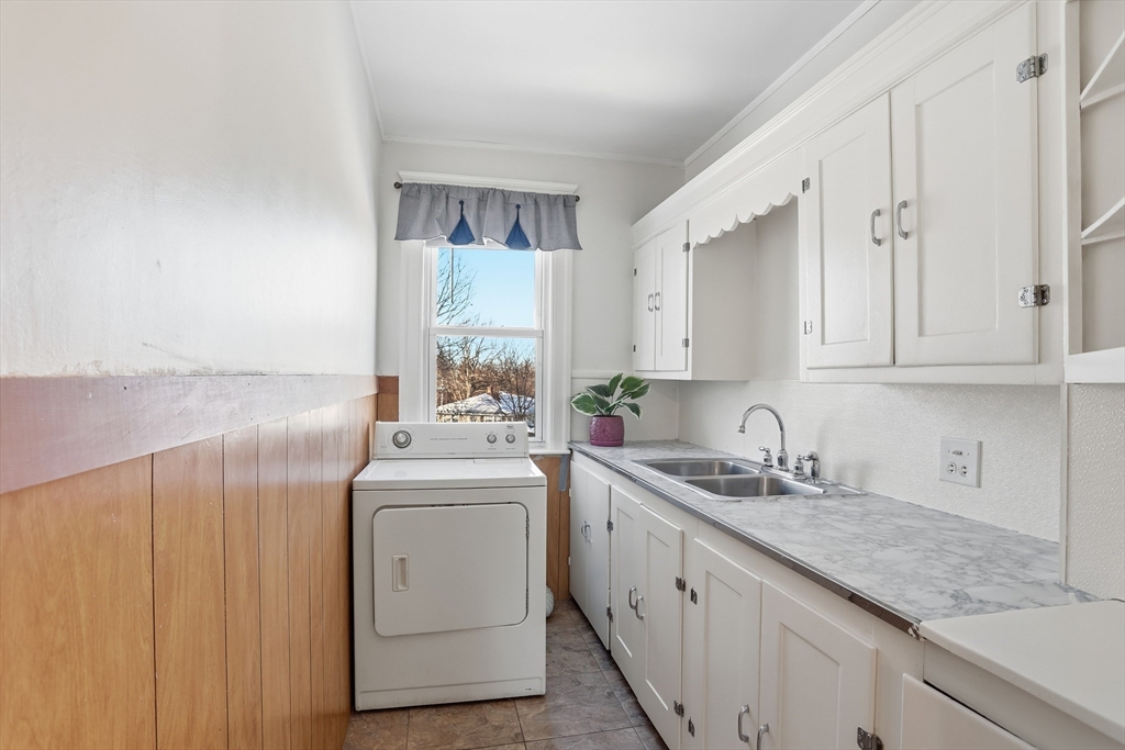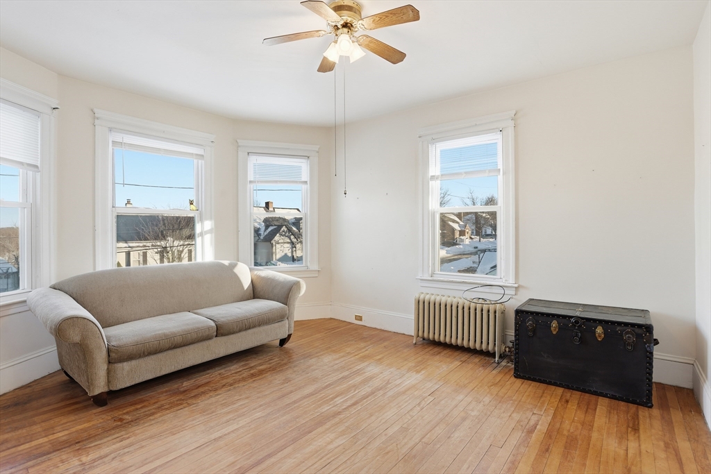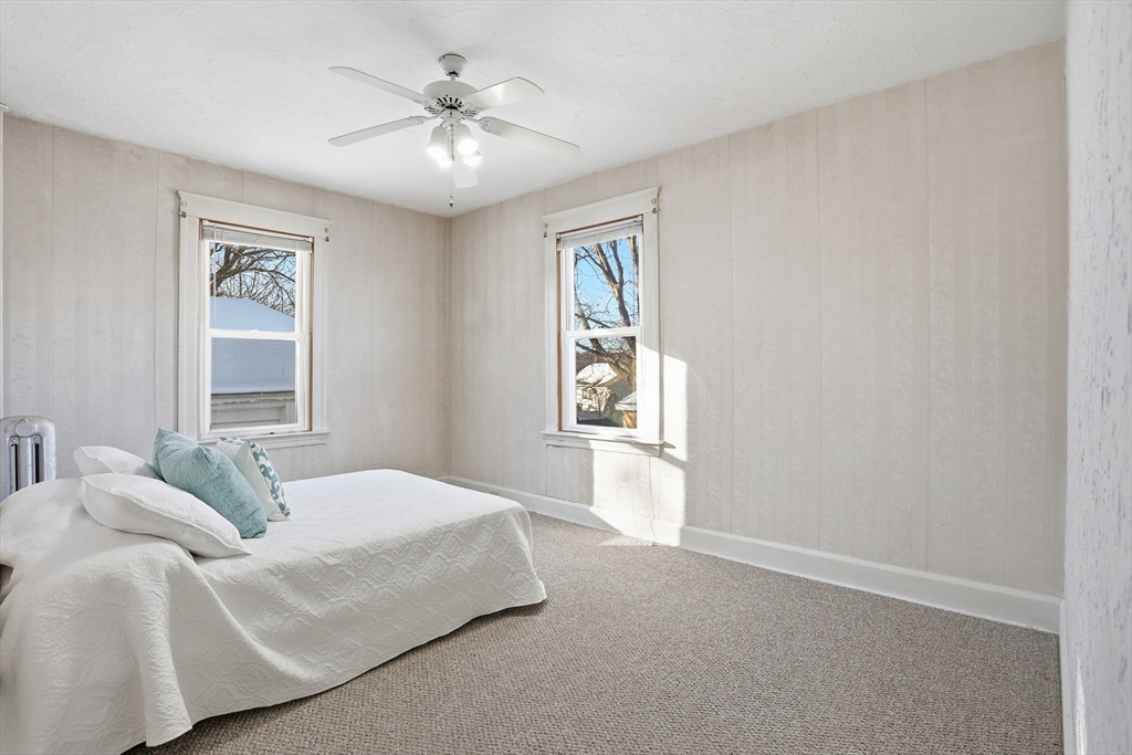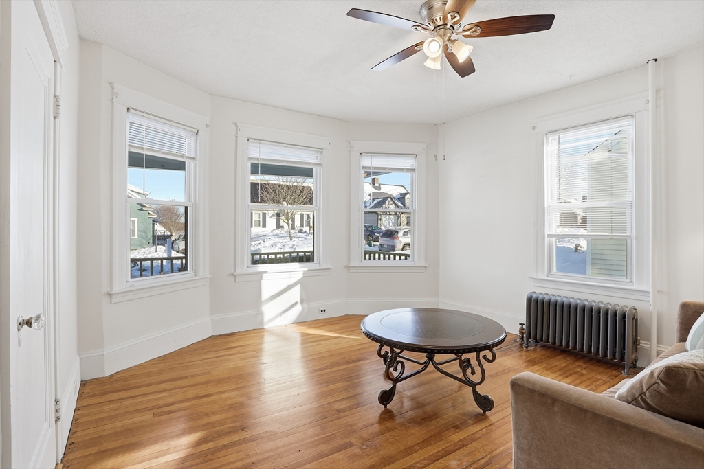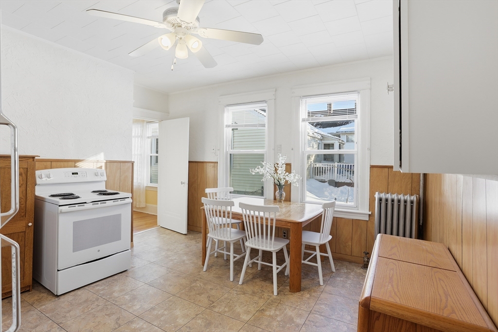 A welcoming covered porch introduces this much-loved two-family home, held by the same family for more than two decades. Set on a quiet neighborhood side street with easy highway access, the property offers an appealing blend of comfort, convenience, and long-term potential. Low-maintenance vinyl siding and hardwood floors throughout provide a solid foundation for future updates. Each unit features 2 bedrooms, 1 full bath, a comfortable living room, and an eat-in kitchen with pantry and in-unit laundry. The first-floor unit includes a flexible office or guest room, while the second-floor offers a spacious dining room. An oversized detached two-car garage provides excellent storage, and the large, recently surveyed yard enhances outdoor appeal. Both units are vacant and ready for immediate occupancy—ideal for investors, extended family living, or owner-occupants seeking a smart mortgage helper. Live in one, rent the other, and build equity from day one.