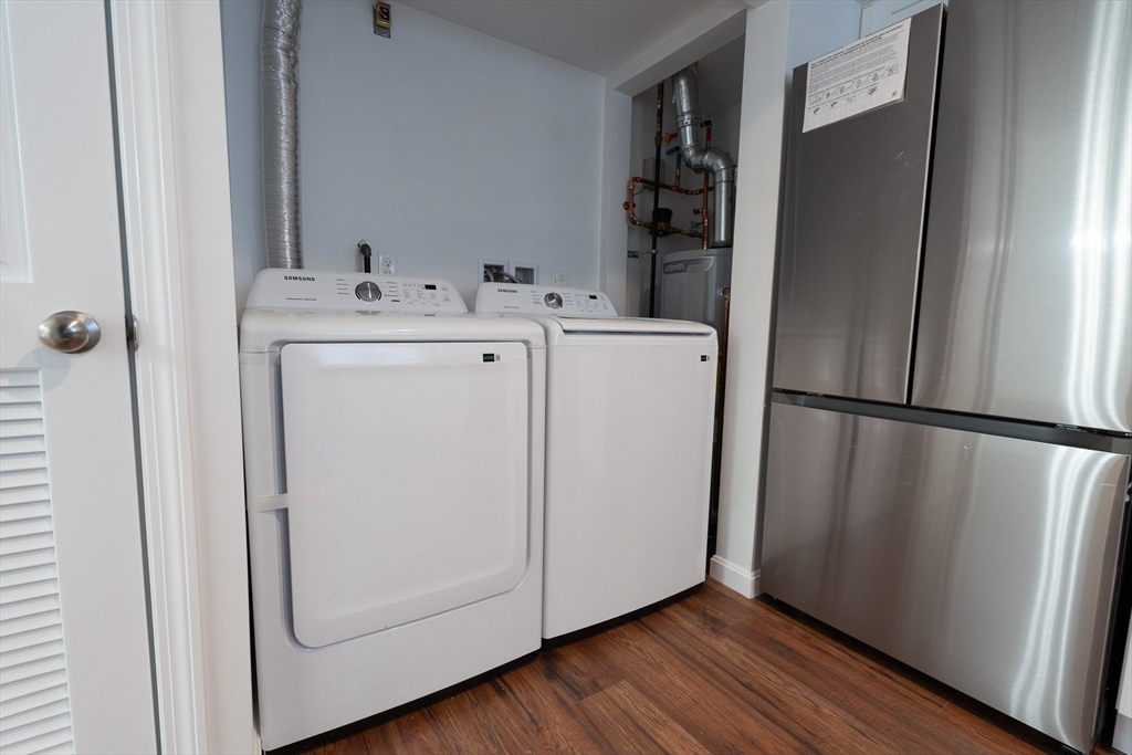 Set in desirable Greenbrook Condo, this fully renovated corner unit invites you in with comfort, warmth & convenience. Thoughtfully updated from the ground up, every detail has been refreshed so you can simply move in and enjoy—new flooring, fresh paint throughout, and all-new appliances ready for everyday living. The first floor flows effortlessly from a new kitchen to a cozy dining area and spacious living room with fireplace, filled with natural light. Sliding doors lead to a private patio, perfect for relaxing or entertaining. Upstairs featuring a full bath, generous primary bedroom, a 2nd bedroom, and a versatile bonus space perfect for home office, playroom, gym or reading nook. Detached garage and extra parking add convenience, while the community amenities—pool and clubhouse—add to the relaxed, neighborhood feel. Just minutes from the commuter rail, with shopping and dining close by, this home offers the perfect balance of modern comfort and connected living.