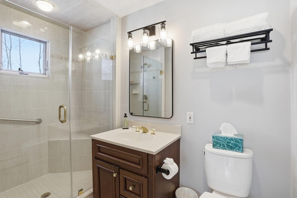Rare single-level living in Bedford! Well-maintained 3-bedroom, 2 bath ranch is set on a desirable corner lot and offers a cozy and comfortable, open layout with abundant natural light and charm. Generous living spaces include a living room with fireplace, dining room, large working kitchen with adjoining office, family room with outdoor access, and comfortable bedrooms. Primary suite boasts a vaulted ceiling, en-suite bath, walk in closet and laundry area. The unfinished lower level offers great storage and a second laundry area. Wait until you see the screened porch & patio overlooking beautiful grounds! Just in time for spring, you'll enjoy gardening in the lush backyard complete with a helpful storage garden shed. Easy access to Bedford center, (and a quick ride to Concord) enjoy all that Bedford has to offer, top tier schools, shopping, dining, and commuter access—this is a terrific opportunity in a highly sought-after location! HEATING SYSTEM NEW 2025!