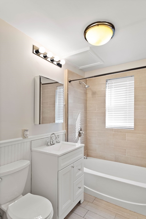 Recently renovated luxury top floor 3 bedroom apartment available March 1 or April 1! Beautifully updated kitchen with white shaker cabinets, quartz countertops,and sleek stainless steel appliances. The kitchen also features lovely quartz countertops, herringbone tile backsplash and a high-end Kraus faucet andsink. The unit was recently painted and has gleaming refinished hardwood floors. Enjoy the outdoors on your spacious front and back decks! Each largebedroom also has a very large closet with plenty of storage. Shared laundry in the basement. Less than 10 minutes to the Shawmut MBTA station viaenchanting Waldeck St and Melville Ave. Easy street parking.