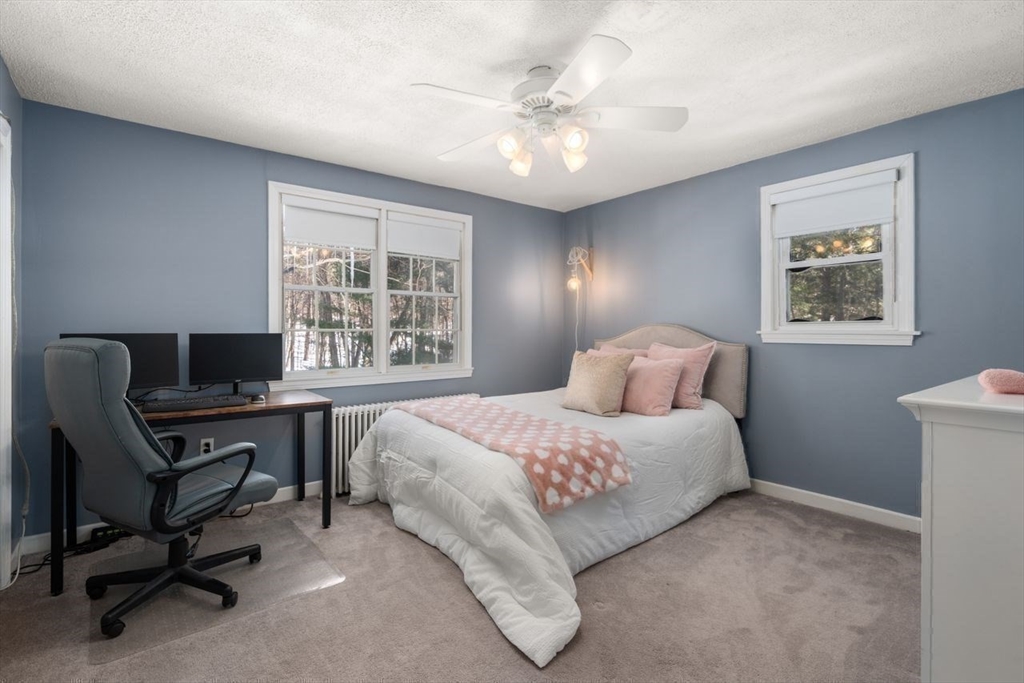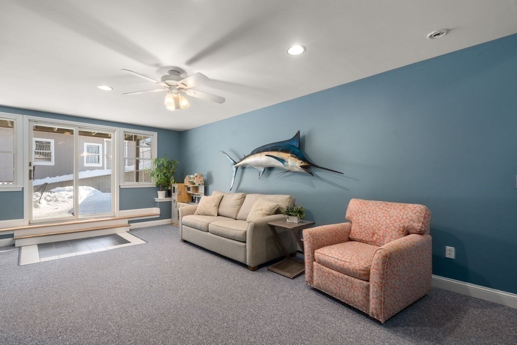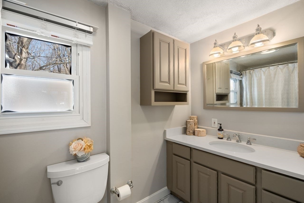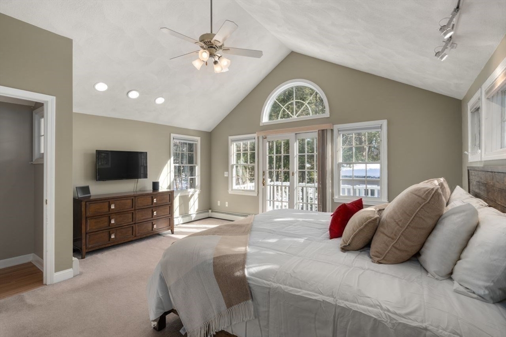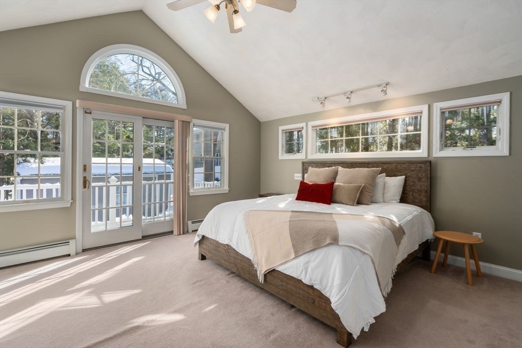 Welcome to 35 Lincoln Avenue, a bright, sun-filled home set back from the street in one of the North Shore's most sought-after towns. The open, light-filled layout features cathedral ceilings and skylights, offering an ideal setting for both entertaining and comfortable everyday living. The main level includes three bedrooms, highlighting a primary suite with a private walk-out balcony overlooking the yard. Updated kitchen and baths enhance move-in appeal, while the finished lower level with walk-out sliders provides versatile space for a family room, home office, or guest area. The property abuts conservation land and offers a stone patio with fire pit and a peaceful, private setting. An oversized shed offers excellent storage. Convenient to Lynnfield Center, shopping, dining, and all three top-rated schools.