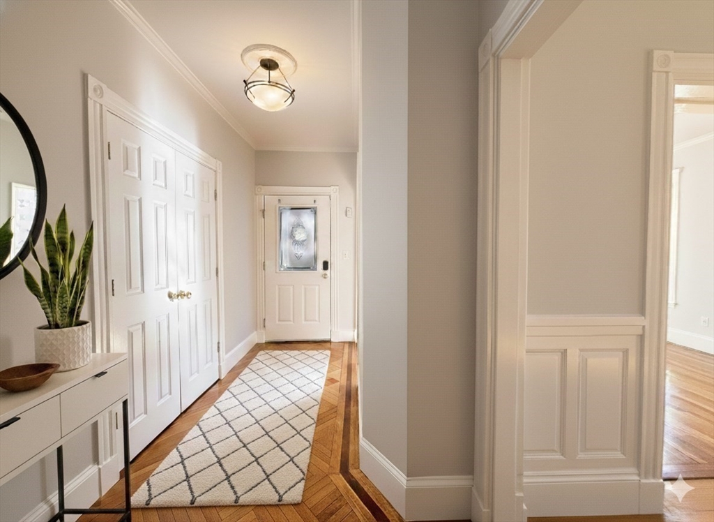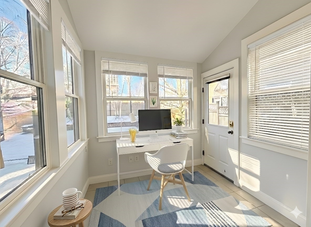 Charm & character radiate throughout this sun-drenched 960 sf 1+ BR /1BA rich in period and architectural detail overlooking magnificent Wellesley Park—an oval green lined w/jardinieres, London Plane trees & century-old gaslights. An inviting foyer w/double closet & herringbone laid wood flrs leads to a spacious LR w/bay window, tall ceilings, gleaming inlaid flrs & crown moldings. A beautiful DR, highlighted by original paneled pocket doors, a Chelsea-tiled wood-burning FP & dentil moldings, opens to a kitchen w/maple cabinetry, granite counters & SS appl. Enjoy a sunny bonus office/sunroom, 196 sf of private basement storage & private W/D. Ideally situated in a picturesque Queen Anne Victorian home punctuated w/a columned front porch & swing and new mahogany front steps. Enjoy gorgeous outdoor space which includes a meticulously landscaped yard w/new fence & gate, lawn & patio. Just 2 blocks to Shawmut Red Line, mins to I-93 & close to Dorchester Ave w/vibrant shops & dining options.