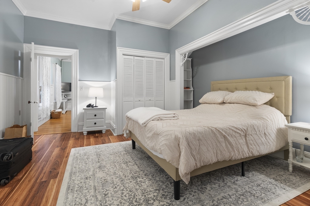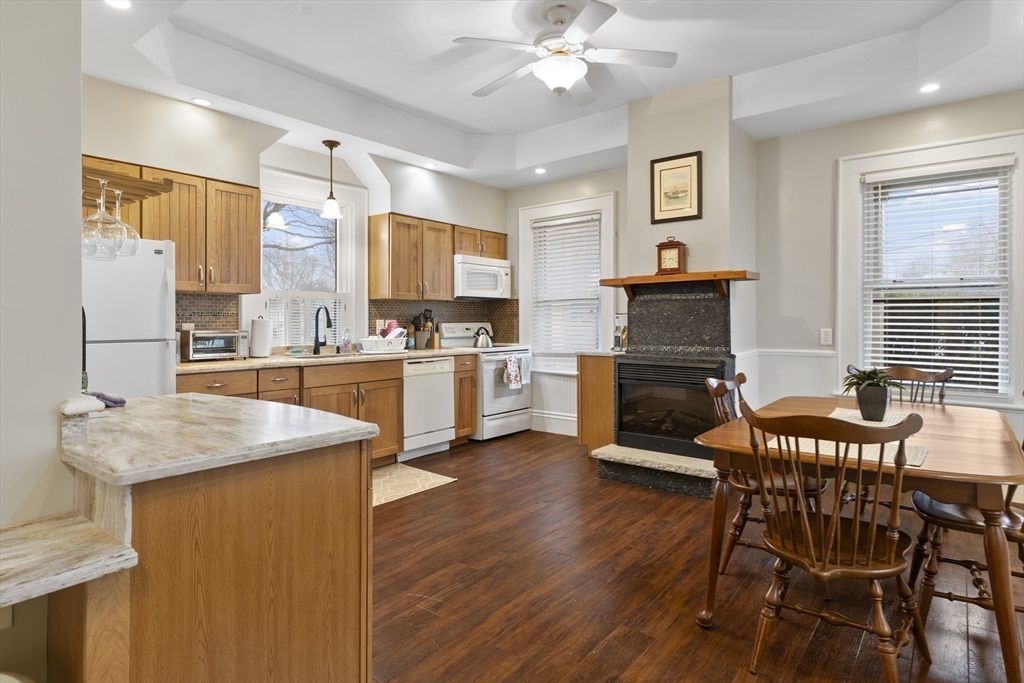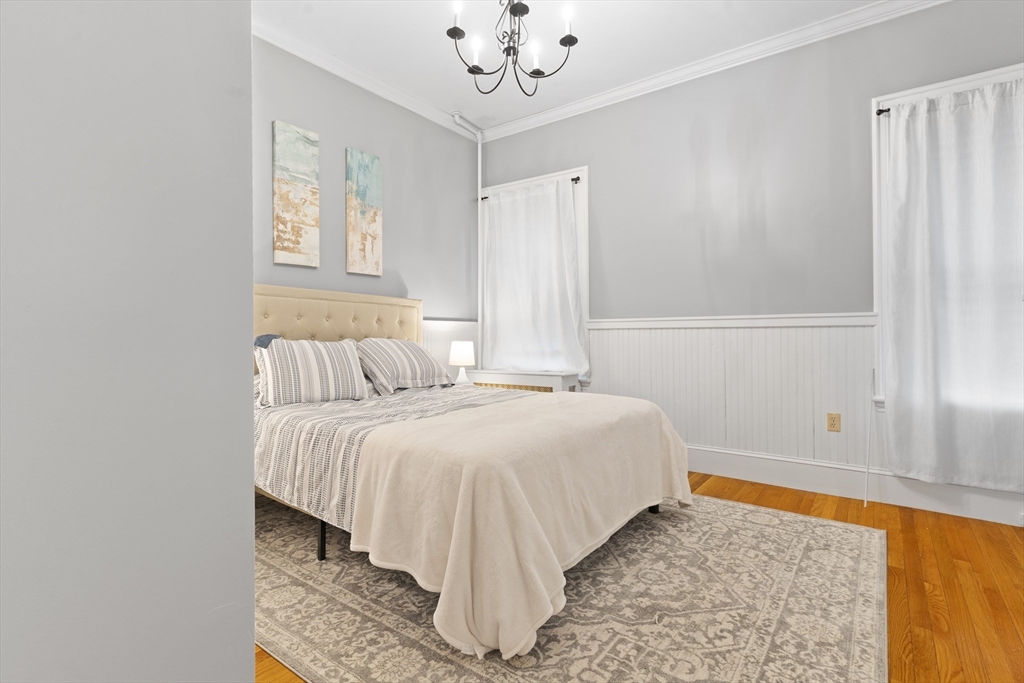 CANCELLED OPEN HOUSE DUE TO BLIZZARD, SAT FEB 7TH! SEE AGENT FOR SHOWINGS. Beautifully decorated and well maintained two bedroom first floor Duplex close to the ocean, Hingham Shipyard. All major utilities included in monthly rent. Spacious modern Kitchen with dining area and gas fireplace. The bright Living room boasts crown molding, wainscoting, gas fireplace, bay window with high ceilings. The molding, wood paneled walls and high ceilings continue into both bedrooms, with ample room for a study desk in one and a coffee table in the Primary. The updated bathroom has a bath with shower and granite countertop vanity. Washer & Dryer are located in a separate walk in Laundry room with storage pace. Beautiful hardwood floors throughout. Exclusive use of covered deck. Enquire about use of separate, unheated office and storage shed. Close to commuter rail & Ferry, Hingham and Weymouth for restaurants and shopping. Minutes to George E. Lane Beach, Webb Memorial State Park & Great Hill P