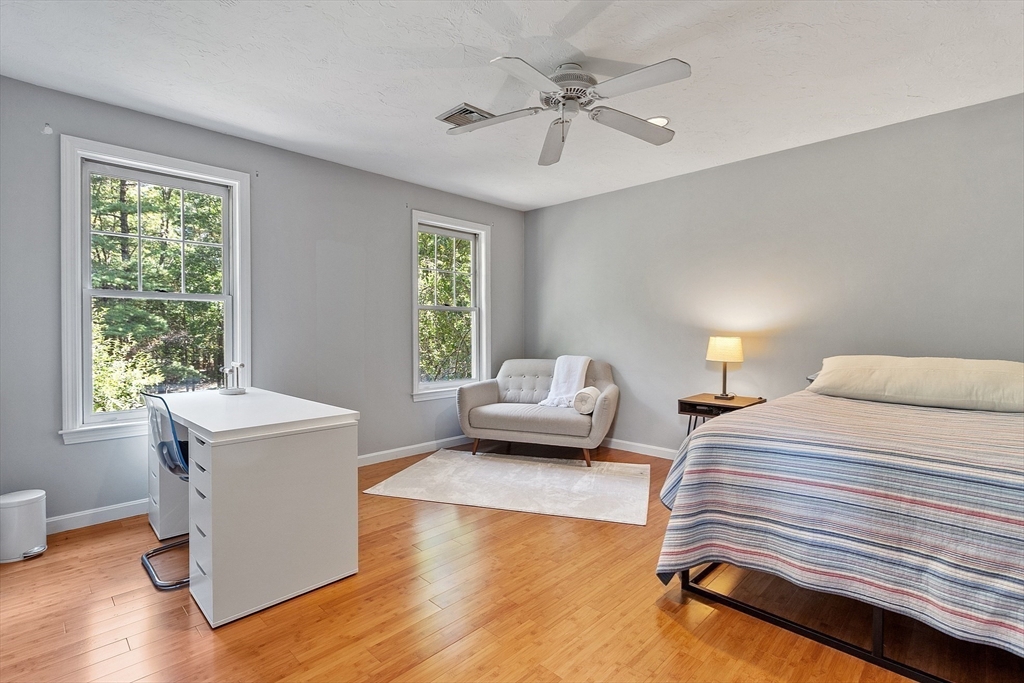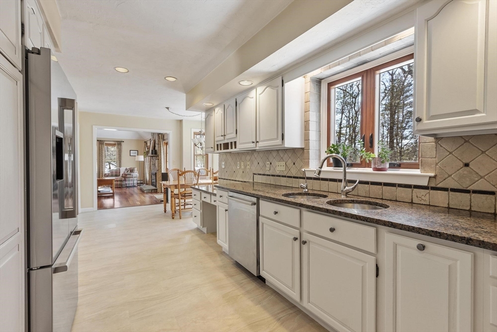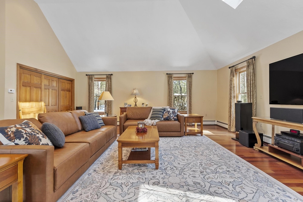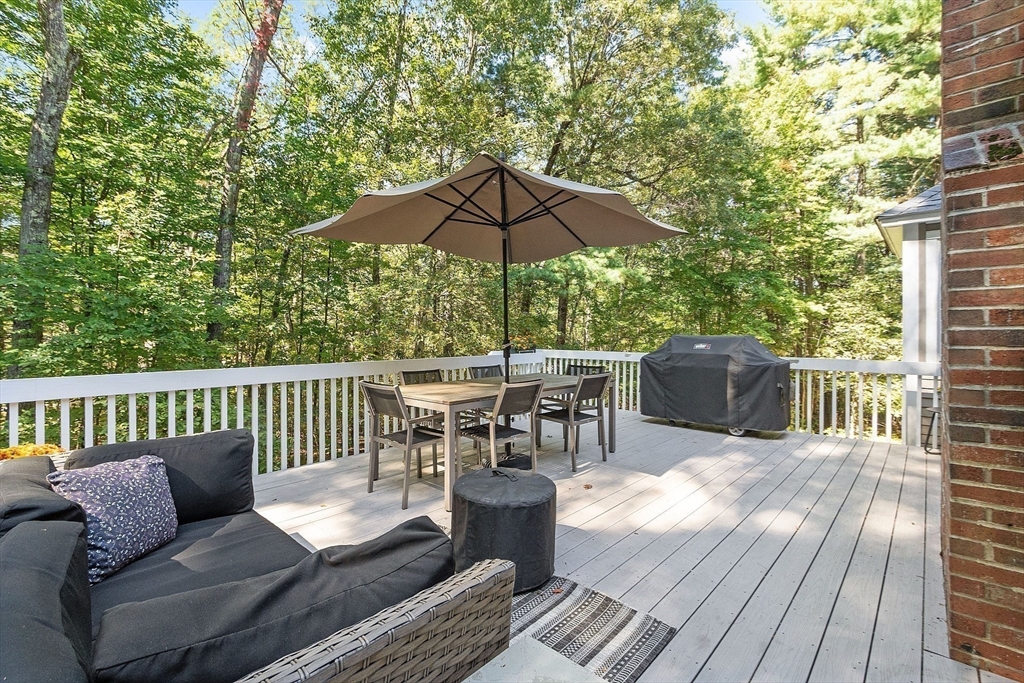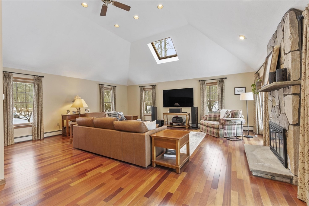 Welcome to this beautifully maintained home where comfort, thoughtful design, and location come together. The expansive family room features a fieldstone wood-burning fireplace and two sliders to an oversized deck—perfect for entertaining or quiet mornings. The eat-in kitchen, recently updated and new floor, blends charm with functionality while the formal dining room provides an inviting setting from casual family dinners to festive gatherings. A front-to-back living room includes French doors and a gas fireplace for added warmth. Upstairs, the cathedral-ceiling primary suite offers an updated ensuite bath and walk-in closet, plus three additional spacious bedrooms and a full bath. The partially finished walk-out lower level to a patio provides flexible space for an office, gym, or playroom. With proximity to the Harvard track and playground, this inviting home is ready to support your lifestyle inside and out. Excellent Harvard Schools, Bare Hill Pond and conservartion trails!
