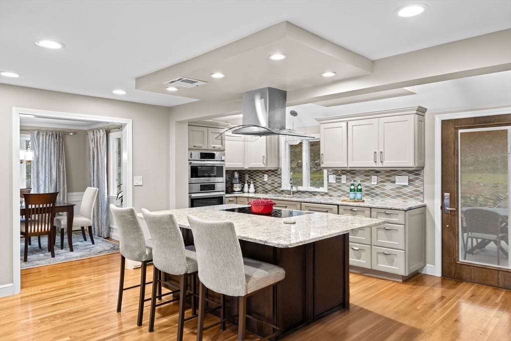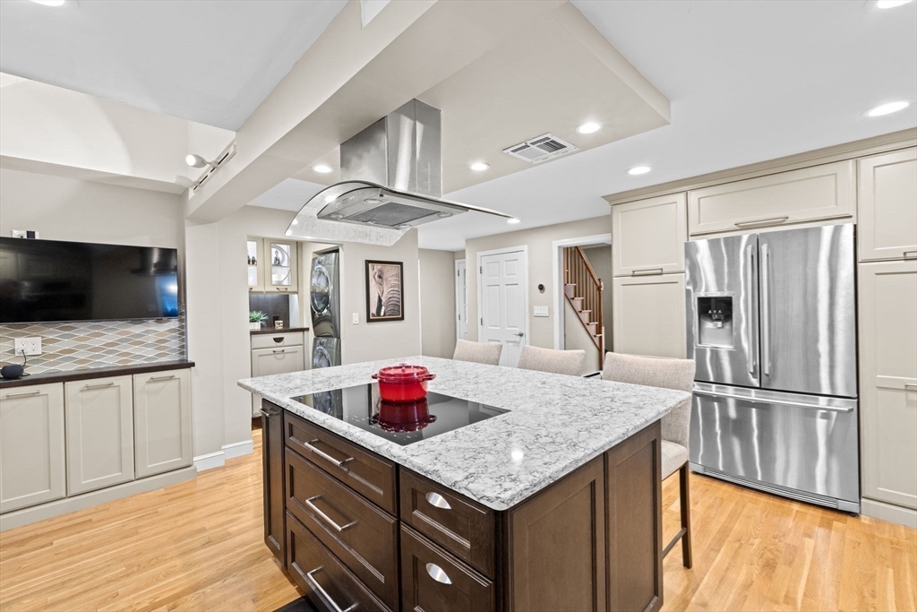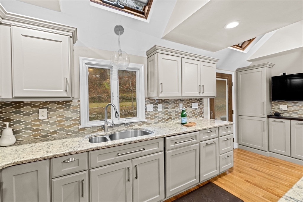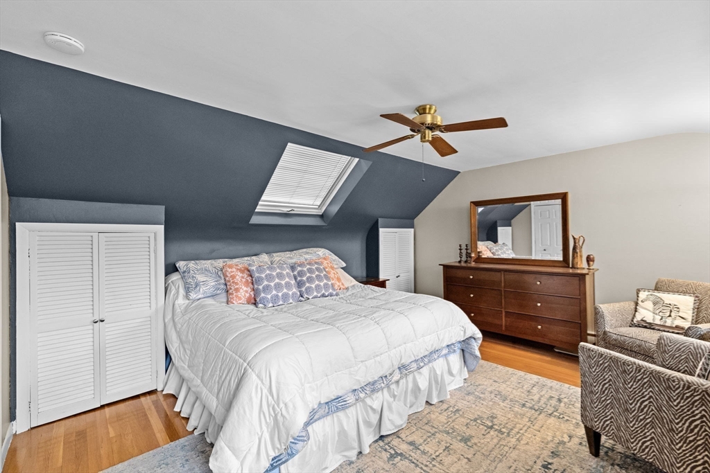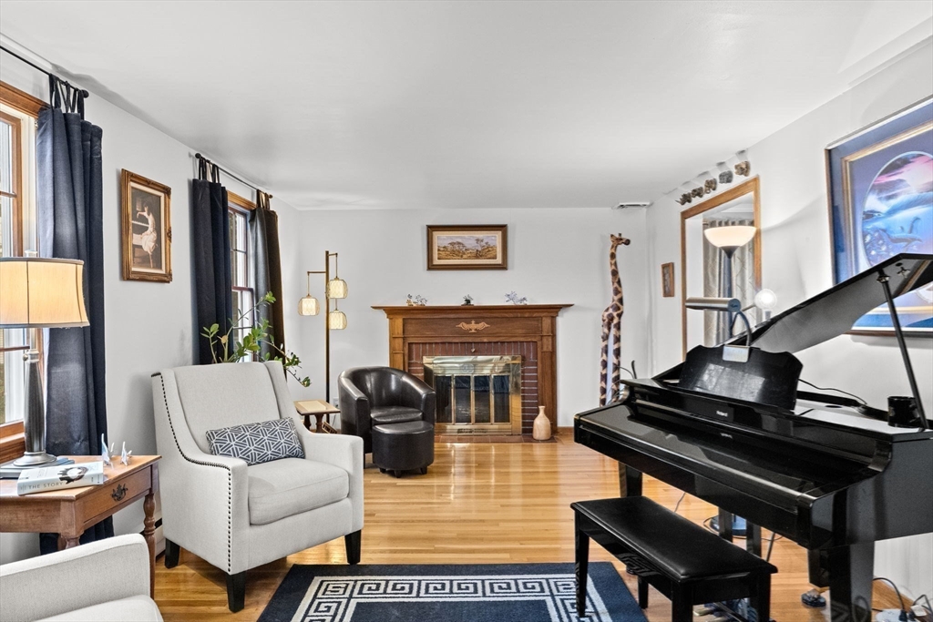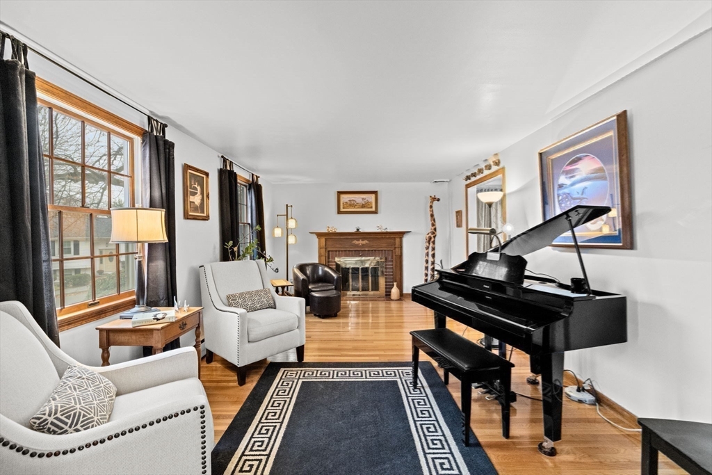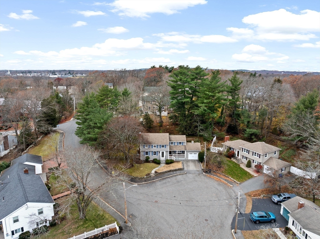Charming Colonial set at the end of a serene cul-de-sac offering unparalleled access for Boston commuters while being walking distance to the 320 acre Pond Meadow Park. This 4 bed home features gleaming wood floors, open floor plan, and beautiful natural light. The state-of-the art kitchen with expansive center island, custom cabinetry, and walk-in pantry flows seamlessly to an entertainment sized dining room and fireplaced living room. Spend movie nights in the spacious family room, with gas stove for those cold winter days. Updated half bath and laundry complete the first floor. Upstairs there are 4 generous bedrooms, newly painted and with hardwoods, including a private primary bedroom. The lower level features additional space for a recreation room, complete with fireplace. Additional features of central air, 200 amp electrical, attached garage, and expansive deck for al fresco dining in the private yard. Seamless commute to Boston, one mile from highway access and MBTA train.