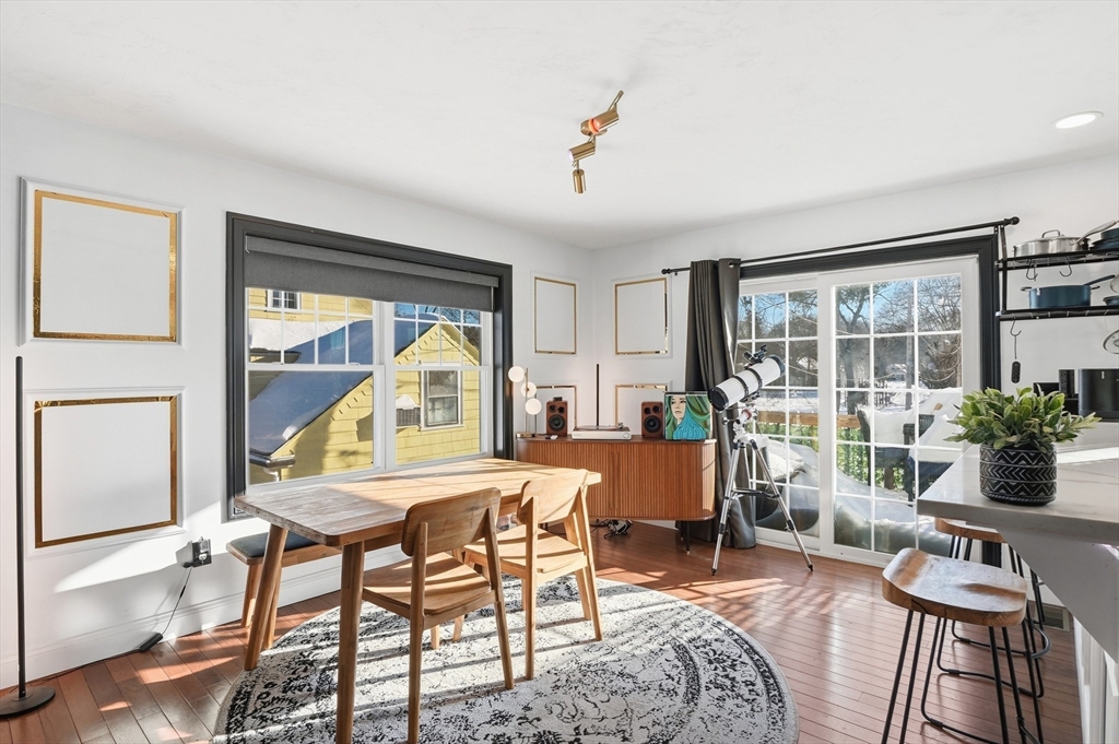 Stylish and move-in ready, this attached single-family home shines with contemporary finishes throughout. The spacious living room makes a statement with a modern accent wall and built-in bar area, opening to a bright, open kitchen featuring stainless steel appliances with a gas stove, quartzite countertops, tile backsplash, abundant cabinetry, and a breakfast bar. The adjoining dining area offers sliders to the deck, perfect for entertaining or relaxing outdoors. A convenient half bath and laundry room/pantry complete the first level. Upstairs, you’ll find three bedrooms, including a main suite with a walk-in closet and en suite bath, plus a second full bath with dual vanity sinks. The finished lower level adds additional living space with a mudroom and a large bonus room w/ sliders to the yard. Attached garage can comfortably accommodate two vehicles, plenty of off-street parking, and a fantastic location just minutes from Newton Square make this home a standout. Welcome Home!