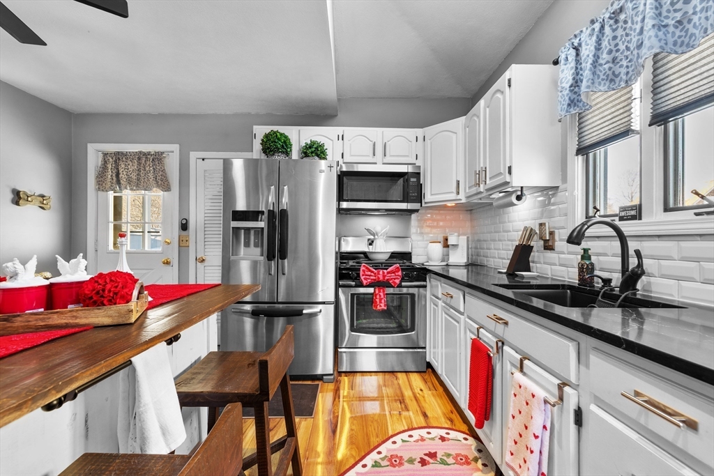 Inviting 6-room Colonial offering a warm and welcoming feel with nicely updated features throughout. The eat-in kitchen boasts quartz countertops, tile backsplash, stylish laminate flooring, skylight, stainless steel appliances, and a large walk-in pantry with potential for a half bath. A sun-filled living room opens to the formal dining room featuring charming built-ins that add period character. The second floor offers three bedrooms (one without a closet) and a nicely updated full bath. Additional highlights include hardwood flooring, mini-split ductless A/C, a covered rear porch, and a fenced yard with patio area and storage shed.Conveniently located near public transportation, Saugus Center, Cliftondale Square, schools, Route 1 shopping and dining, and just 20 minutes to Boston. This could be the one you’ve been waiting for!