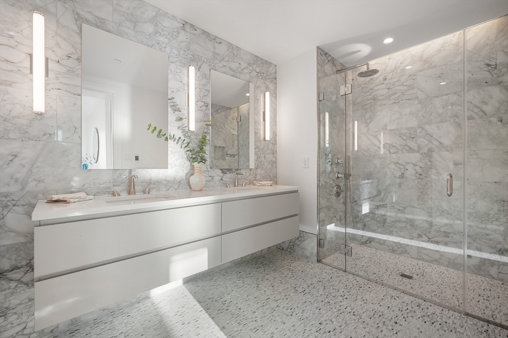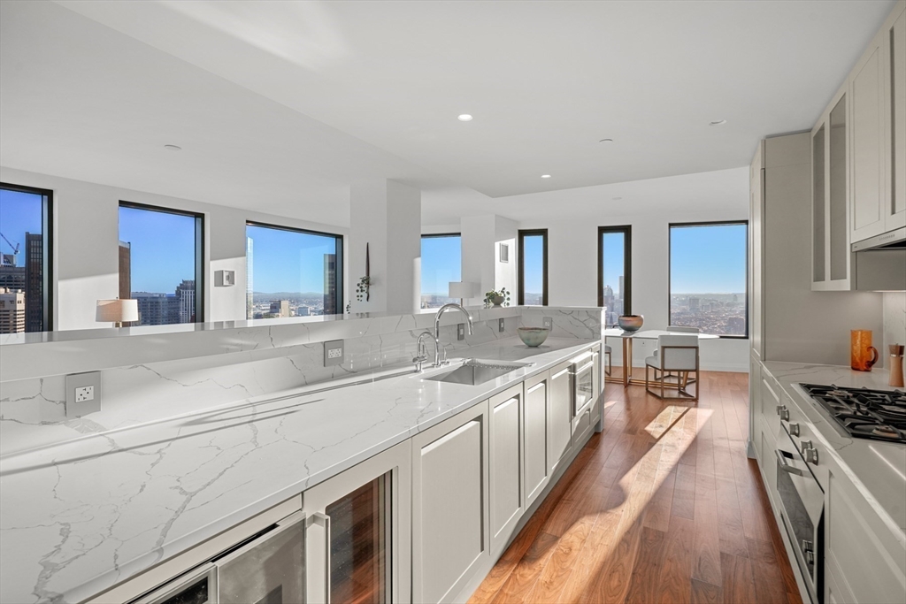 South corner residence boasting 3 exposures and an incredible 250’ viewspan from sunrises over the harbor to sunsets over the Charles River. A versatile layout offers homeowners the opportunity to tailor this home to their desire. A large den/3rd BD overlooks the harbor & the primary has views of the river. Radiant heated floors in primary BA. Range hood, full size dryer & baths vent out. Custom cabinetry, Carrara quartz, integrated appliances & wine cooler. The Sudbury is a new hi-rise where the North End meets Beacon Hill w/ just 55 luxury condos crowning the tower, designed for those seeking city living while retaining the intimacy of a boutique. Amenities: private lobby w/ 24/7 concierge, private clubroom & private roof garden. Heated outdoor pool, 4500sf fitness center/yoga studio, sports simulator, outdoor dog park, sky lounge/terrace, chef’s kitchen/private dining & more. Steps to Greenway and Harborwalk. Easy access to I-93 and Logan. 2 assigned self-parking in attached garage.