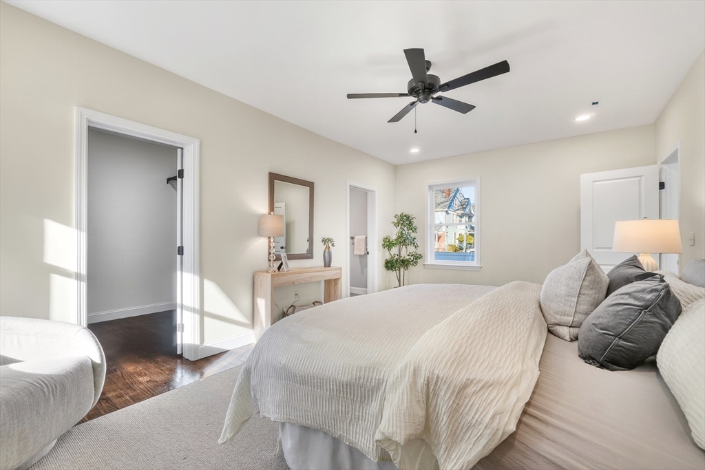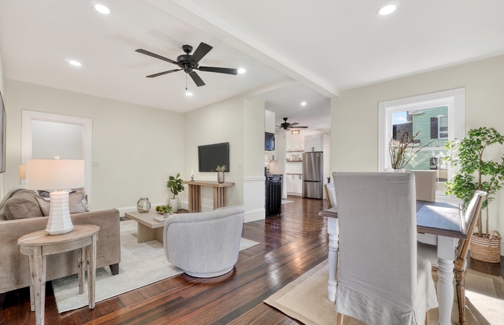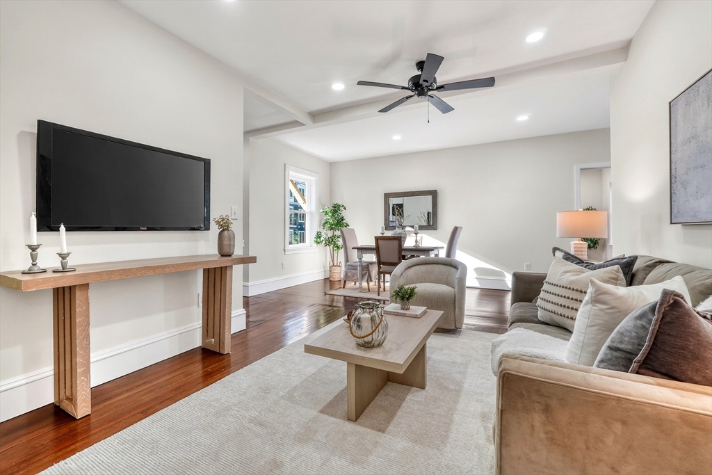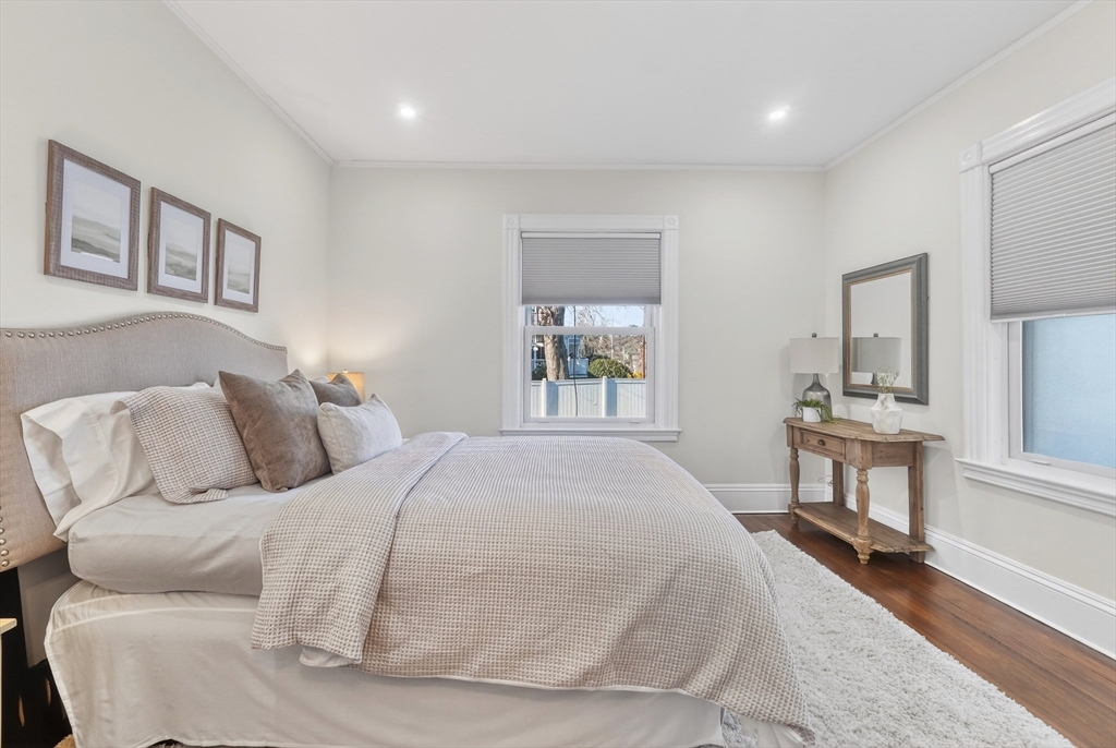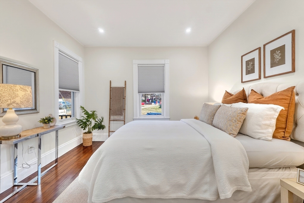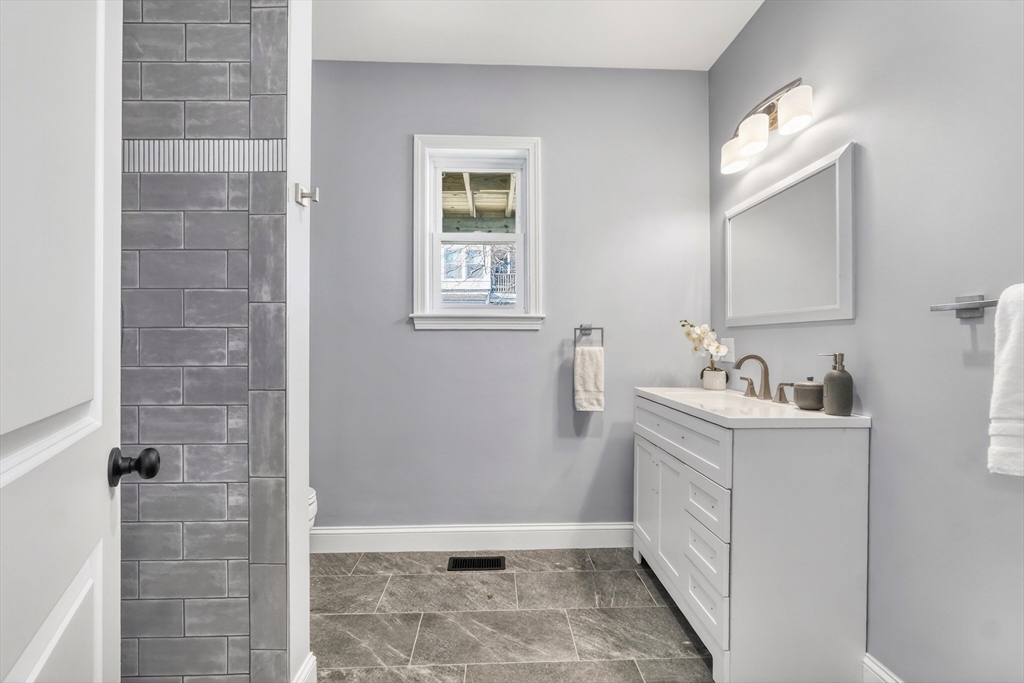 Beautifully updated 1st fl condo offering classic period charm, high ceilings & great natural light! The flexible layout includes an expansive open LR & DR featuring recessed lighting, a spacious eat-in kitchen offering abundant white cabinets, granite counters & new stainless steel appliances. The 4 spacious bdrms include a NEW primary suite addition w/walk-in closet & stlyish bath featuring a tiled walk-in shower & the 4th private bdrm sits on the 2nd level (works well as an in-home office too), Additional features include an exclusive private outdoor space, good-sized storgage area in the basement, seperate laundry rm & 2 car parking. Walk to Oak Grove bus, Highlands commuter rail (purple line), Whole Foods, restaurants, Melrose high & middle school & so much more!..Simply move-in, unpack & start enjoying all the Melrose has to offer...extensive community amentiies, proximity to transportation & Boston...& a small town welcoming feel! New roof, paint & central AC!