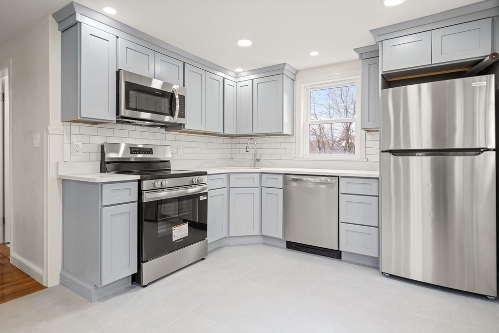 This charming Cape-style home in Brockton has been beautifully updated from top to bottom. With approximately 1,200 sq ft of living space, this newly renovated 3-bed, 2-bath home sits on a generous lot with a freshly paved driveway, newly built deck and great curb appeal. Step inside to find a brand-new kitchen featuring modern cabinetry, quartz countertops, and stainless steel appliances that flow seamlessly into the open dining area. The sleek, updated bathrooms and inviting fireplace focal point bring comfort and style to everyday living. A full basement offers ample storage or the potential to be finished for additional living space. Outside, enjoy a private yard perfect for entertaining or relaxing at home. Conveniently located near schools, shopping, and major commuter routes with easy access to both Boston and Cape Cod. This move-in ready home checks every box.