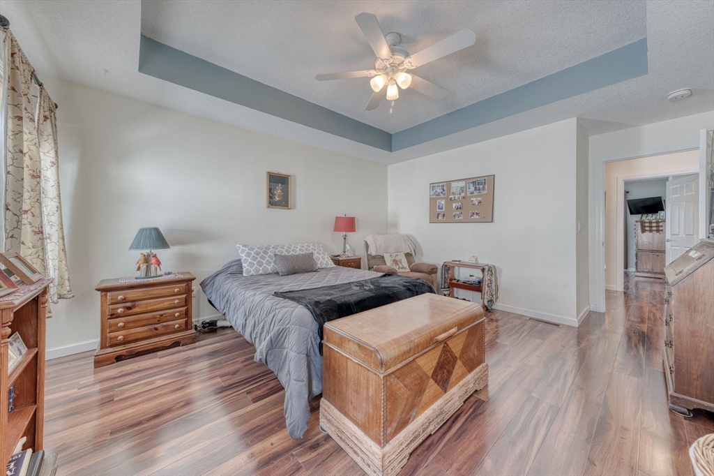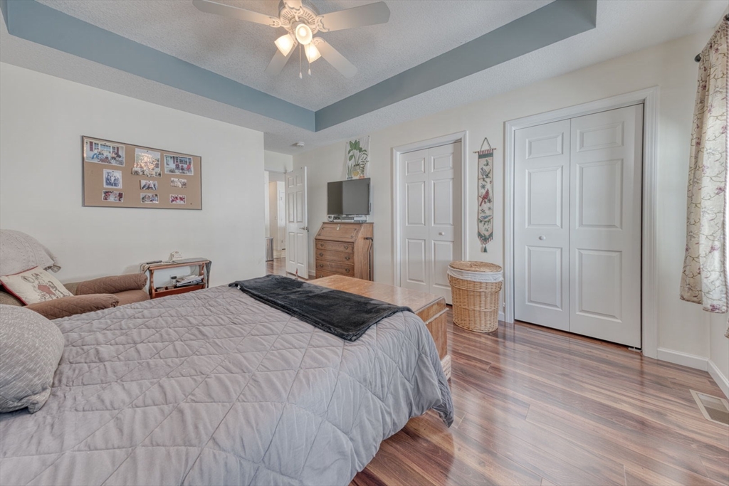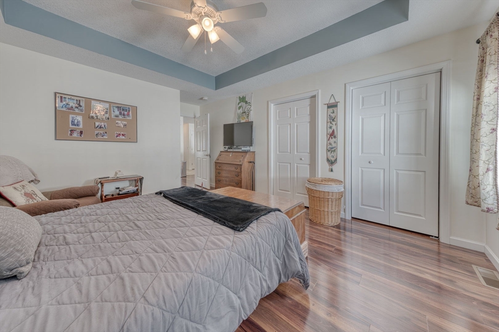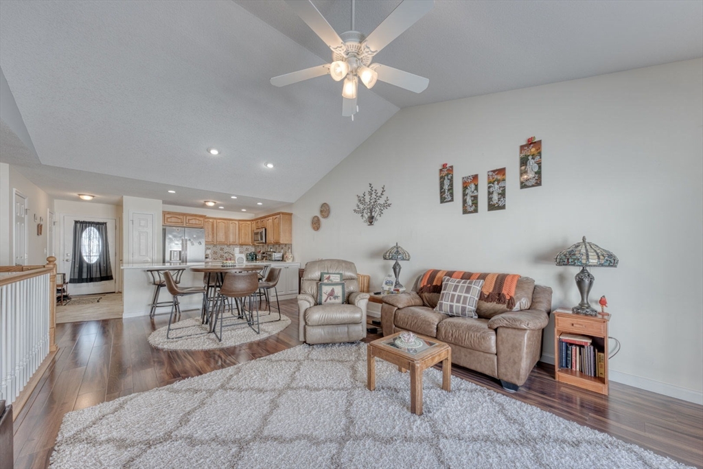Step into this beautifully maintained home that perfectly combines classic charm with modern conveniences. Featuring gleaming hardwood floors throughout, a beautiful kitchen with stainless steel appliances and quartz countertops, Combination living room and dining room, great for entertaining, you can walk out to your private deck. Both bedrooms generously sized with ample natural light. The spacious Primary bedroom with it's tray ceiling is warm and inviting. Lower level is nicely carpeted with it's own half bath.