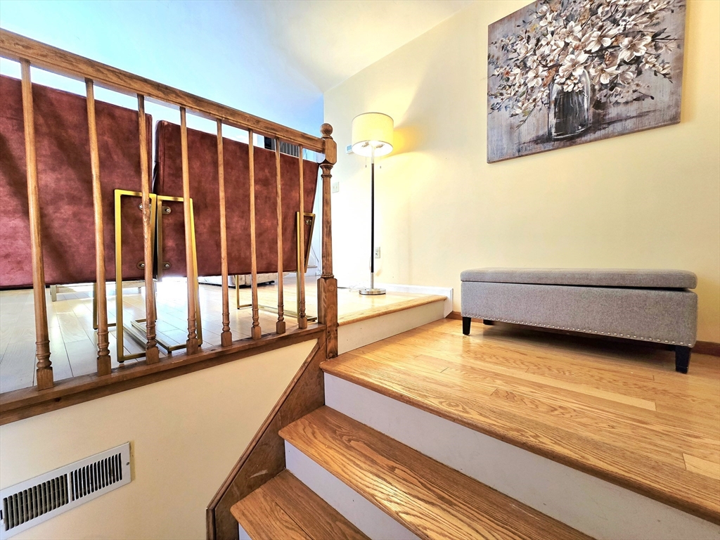 Welcome to this beautifully well-maintained and move-in-ready townhouse located in a highly desirable area. This home offers 7 rooms, 3 spacious bedrooms, 1.5 baths, a 1-car garage, and 1,806 sq ft of comfortable living space. Recent updates include AC and heating system (approx. 5 years old), roof replaced in 2016, balcony replaced in 2017, and energy-efficient windows installed in 2020. Hardwood flooring on the main level, bamboo flooring on the second floor, and top-quality vinyl flooring in the finished basement. The finished basement provides additional living space with a bonus room ideal for a home office, guest room, or gym. Ample storage with multiple closets throughout. Bright and functional layout. Conveniently located near shopping, dining, golf course, and major highways. Enjoy wooded views and direct access to a walking trail behind the unit. Plenty of guest parking available. Do not miss this great opportunity. OPEN HOUSE SUNDAY 2PM - 3:30PM.