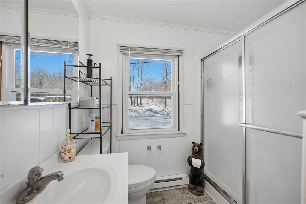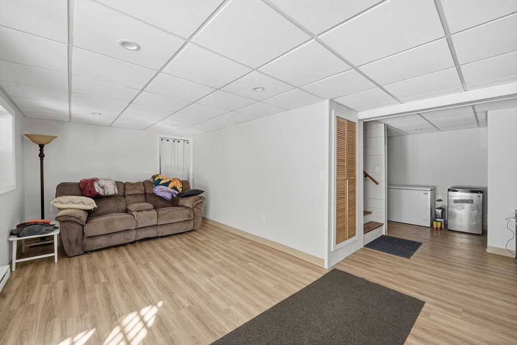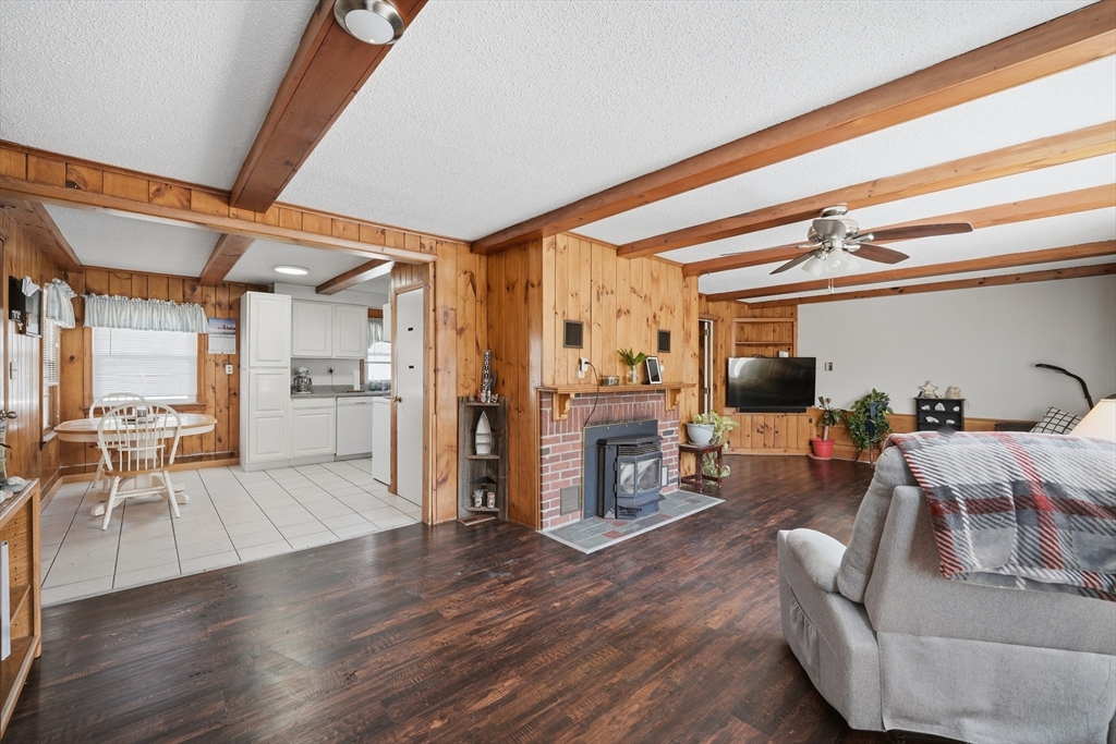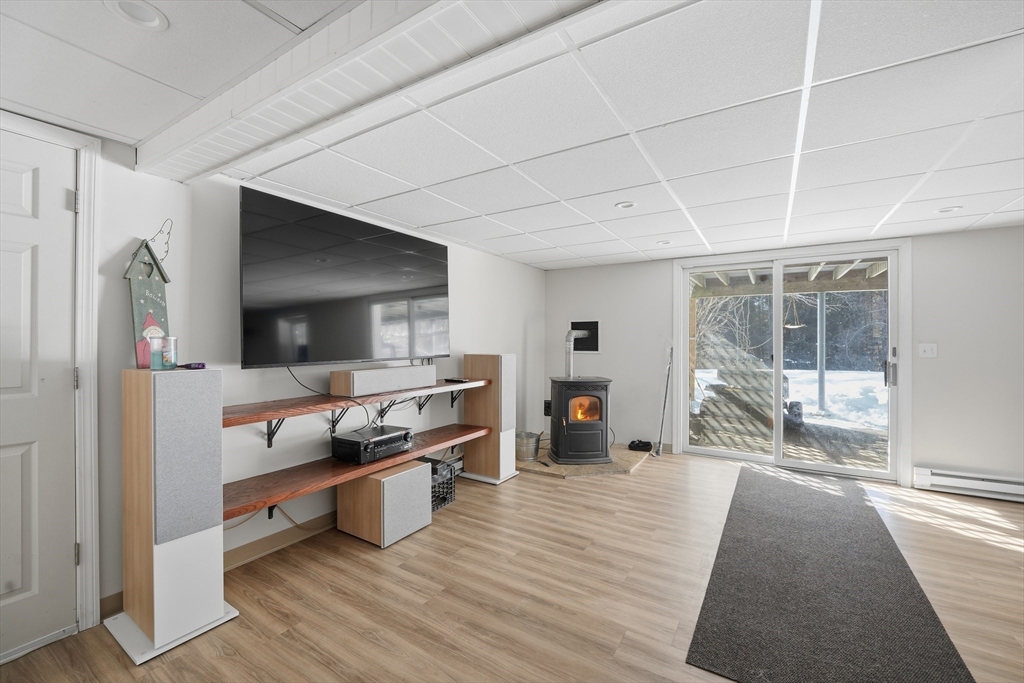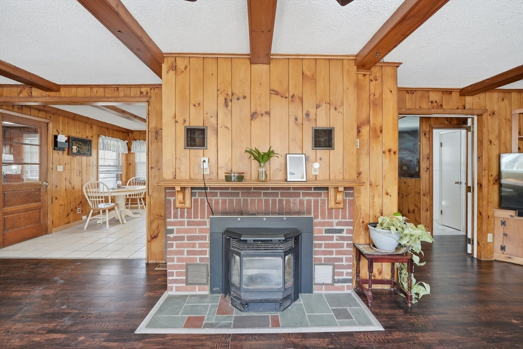 If you're looking for a breather with a nice, little move to the hilltowns, look no further than this affordable and move-in Ranch located in the quaint town of Worthington!! Gorgeously remodeled with dark luxury vinyl flooring and beamed ceilings, this home is a sweet surprise from the first steps you take inside! Stay warm all winter long with pellet stoves on both floors that warm the entire house! A white, bright kitchen offers plenty of counter and cabinet space. Two freshly-painted bedrooms are located on the main floor along with the full bath featuring walk-in shower. Main level laundry and a large mudroom is perfect to keep coats, shoes and backpacks organized! Enjoy additional living space in the finished basement featuring walk-out slider to the exterior as well as another finished room - perfect for a home office, playroom or possible 3rd bedroom! Soak up the outdoor life from the huge deck overlooking the gorgeous backyard! Two garages are great for cars, mowers and toys!