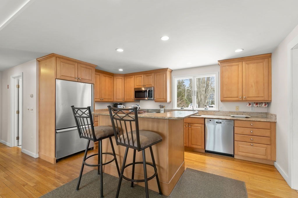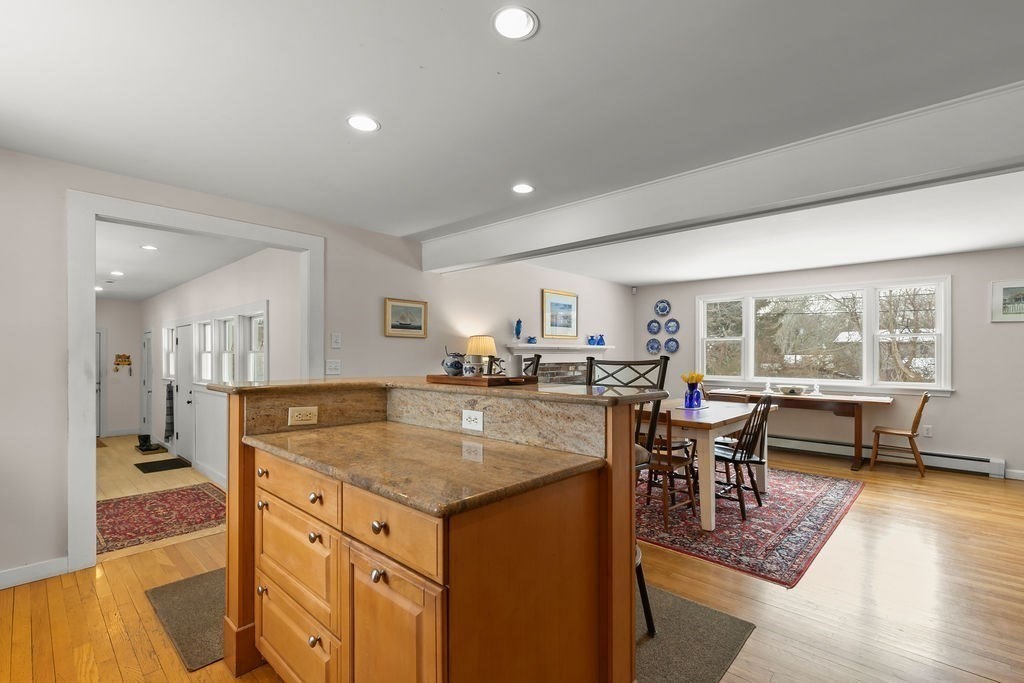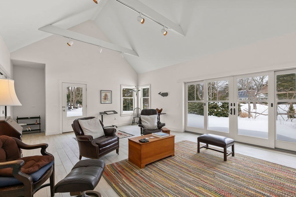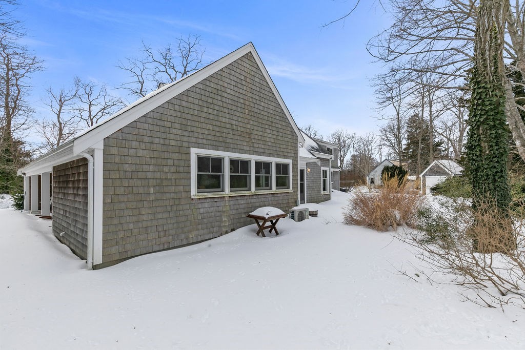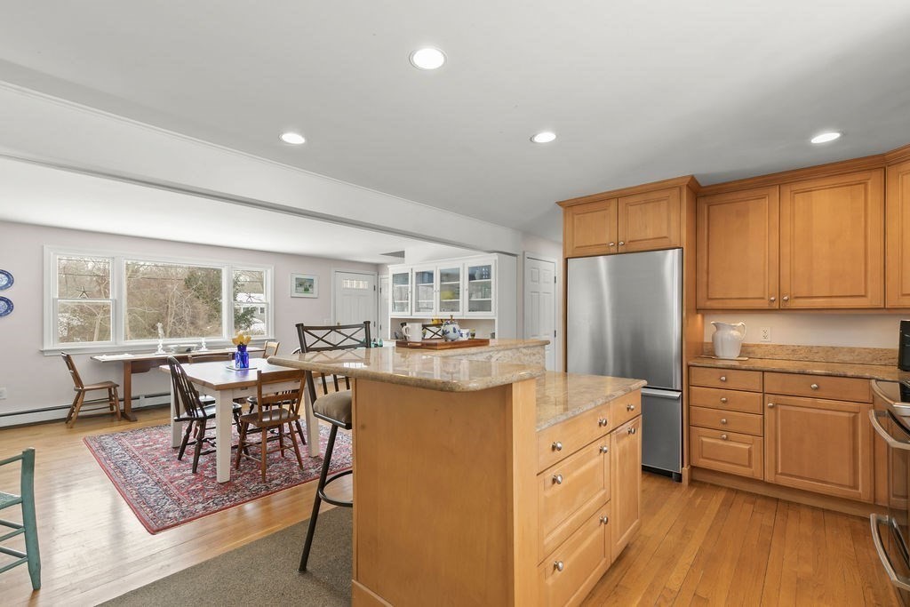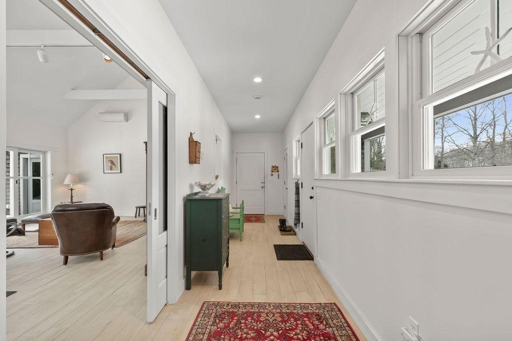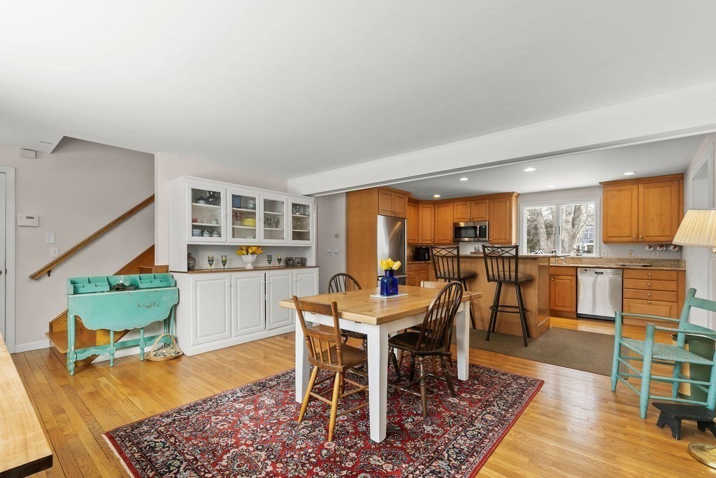 Located in the heart of Downtown Falmouth, this classic 4 bedroom, 2 bathroom Cape Cod home has been thoughtfully redesigned for both comfort and style. The addition includes a new main entry leading into a mud room with generous closet and door out to the one-car attached garage and a custom workshop. The workshop enjoys warming radiant heat floors. A true artist's retreat. Enter the new great room with soaring cathedral ceilings, radiant floor heating, a mini-split for cooling, and sliding doors that open to the backyard gardens. The eat-in kitchen features a center island, granite countertops, and custom wood cabinetry. The rooms are bathed in natural light, offering a tranquil setting for dining and entertaining. The classic side of the home boasts hardwood floors, two bedrooms and a full bath on the first floor, and there are two larger carpeted bedrooms and another full bath on the second floor. Enjoy the beautiful gardens outside and proximity to Main Street, downtown!