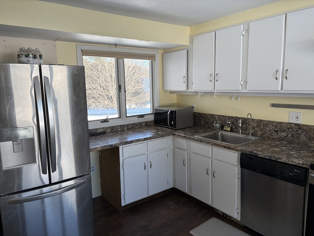 Spacious corner condo unit in the beautiful setting at Hampshire Village Condos with views of the Holyoke Mt. Range. This 3 bedroom condo offers a working kitchen, large living area, finished basement, fireplace, natural gas heat, central air, garage and a deck (2025) with western sunset views. Seller has upgraded features such as: 2 new windows, Oven (2024) Refrigerator (2023), and Washer and Dryer (2020). Walk to Atkin Farms Country Store, complex pool, Hampshire College, Eric Carle Museum or a short ride to the Hadley Malls and downtown Amherst Center.. Enjoy a quiet rural setting close to hiking trails and easy access to major highways.