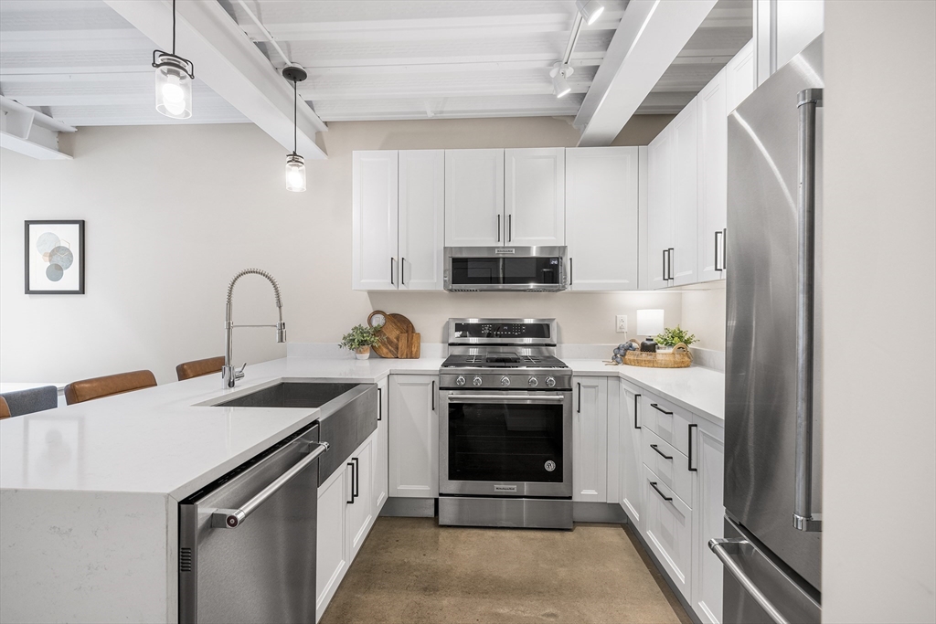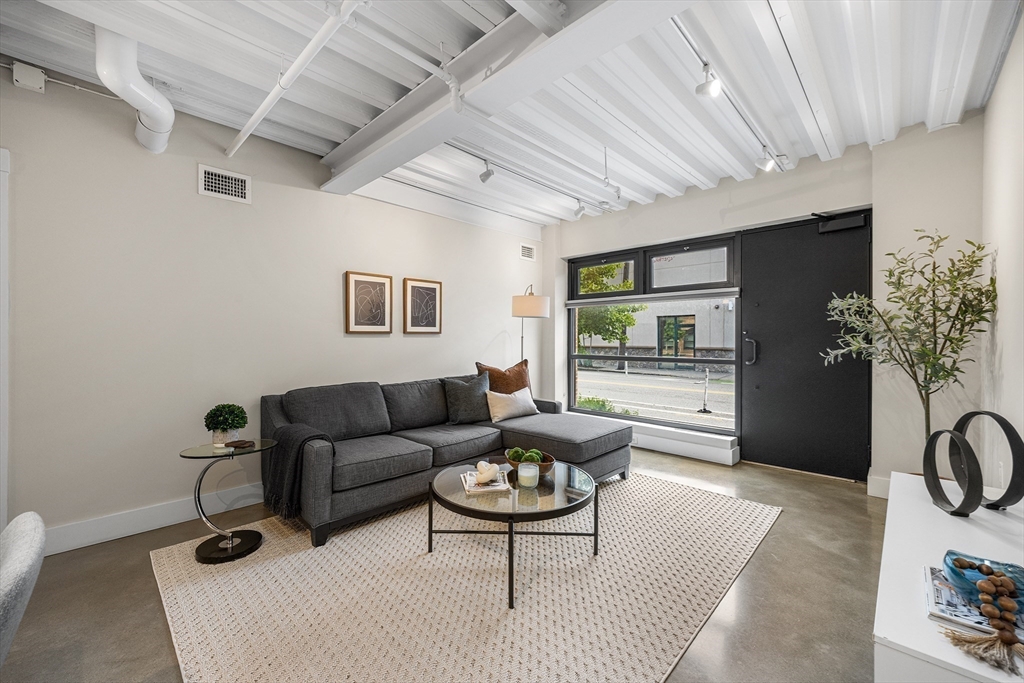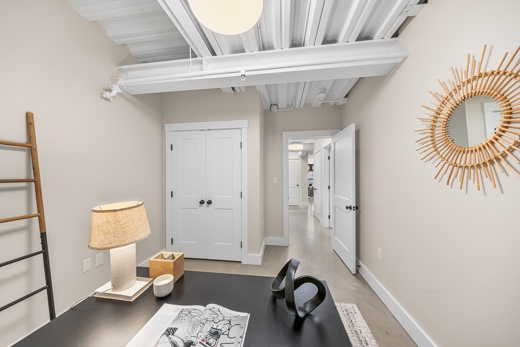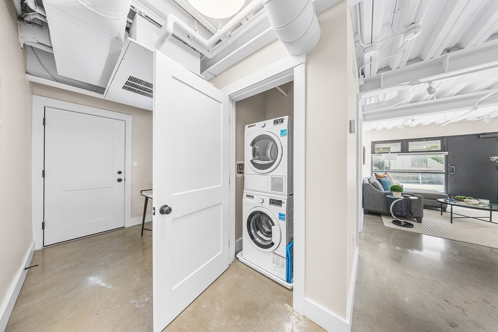 This contemporary spacious two-bedroom residence w/ a large office w 1250 sq ft of living space along w/ elevator access to the heated garage parking space. The home features an open layout perfect for modern living, w stylish quartz kitchen countertops, stainless steel appliances, and vented cooktop, in-unit laundry and polished concrete flooring throughout. Amenities include private first-floor storage, a community room, and bike storage. Located in Inman Crossing, a professionally managed LEED-Rated four-story building, this unique live-work residence offers direct private street access to your home. This setup presents a distinct opportunity to operate your own personal business conveniently from your residence. Centrally situated in Inman Square, access to shops, restaurants, and local amenities. Convenient location to Union Harvard, Kendall, and Central Squares, w/ the Green Line nearby and Blue Bikes conveniently located. Parking Space#22. Storage unit # is 22H
