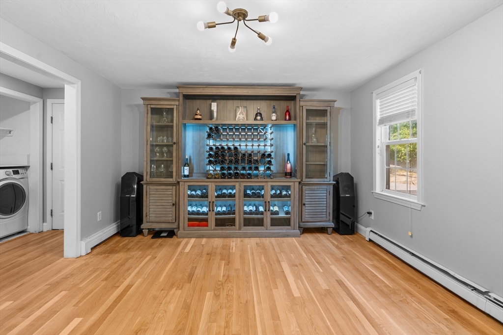 Hidden Gem!! Sunny palladium Cape style house with almost 1 acre of land! The first floor offers a nice bright kitchen with stainless steel, quartz counters, large island for entertaining or breakfast bar. Slider off the dining room leads out to the manicured back yard & decking. Great space for BBQ'S. Living room has vaulted ceiling & great open floor plan. This level also has a spacious room which could be used as a den/office. Recreate the 1st level space & have room for sleeping arrangements on the 1st floor. Wood flooring throughout this level, 1st floor laundry, one full bathroom. Second floor offers a very large primary bedroom with bathroom access and two additional bedrooms as well. The basement is partially finished with two rooms to use for games, office, overflow etc. Level lot with professional landscaping & irrigation, outside shower, shed for storage, garden space etc. A must see!! Solar panels on roof are leased.... with Approx. 11 years left.