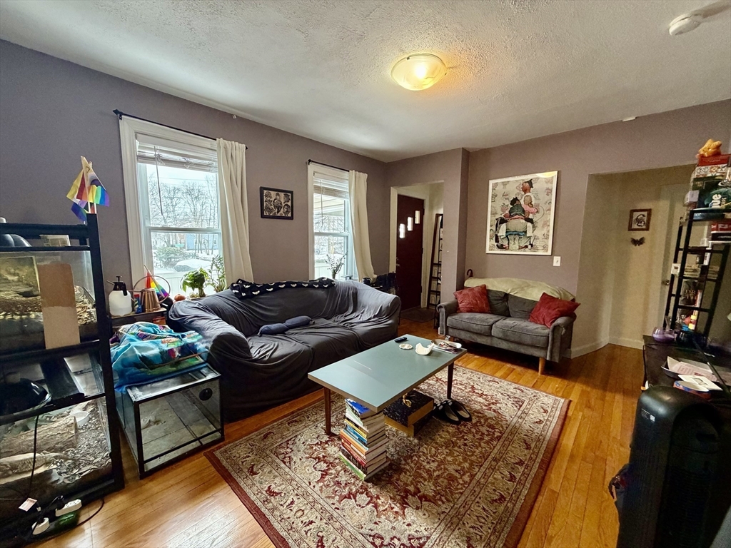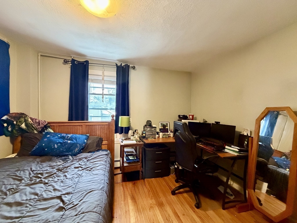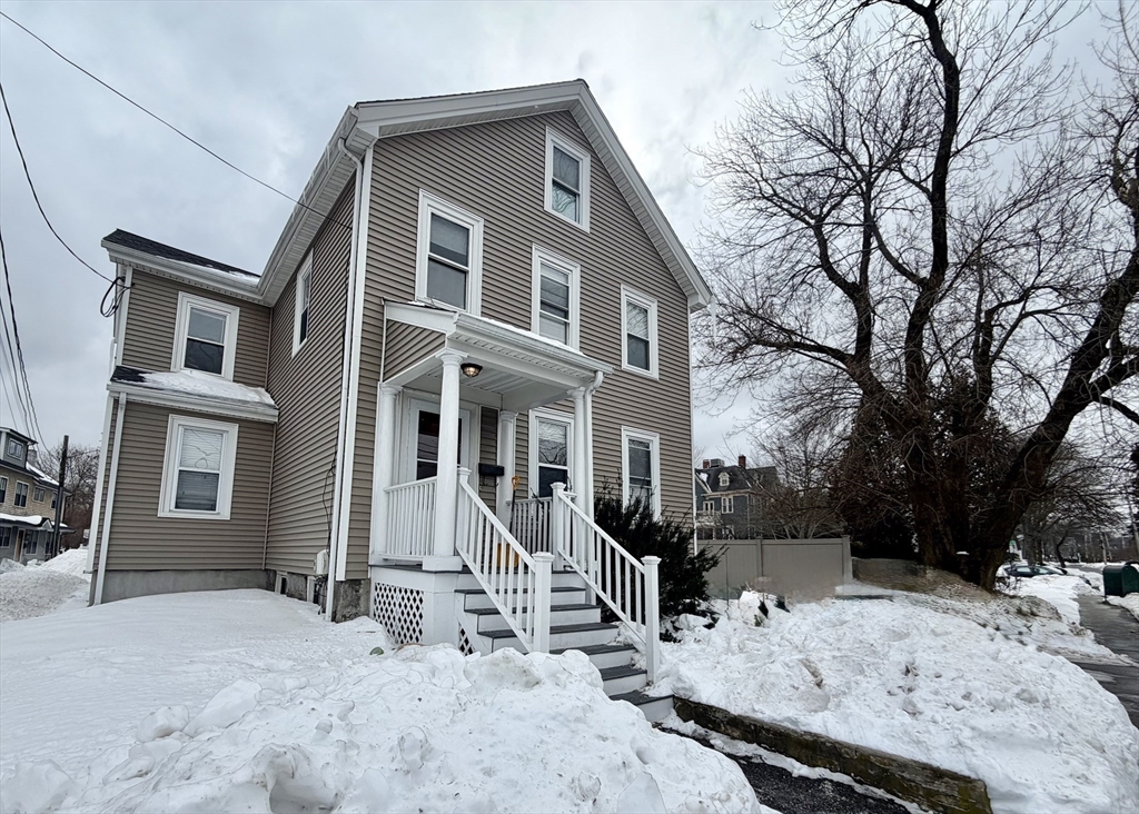 Welcome to this meticulously maintained 1st-floor rental unit in Newtonville! This spacious 3-bed, 1-bath apartment offers just under 1,300 sq. ft. of living space, featuring stunning wood floors throughout, with tiled flooring in the kitchen & bathroom areas. The inviting eat-in kitchen boasts a stylish peninsula island, perfect for casual dining, along with abundant cabinetry & counter space for all your culinary needs. The living room acts as the heart of this home & offers a versatile floor-plan & flooded with natural light.The bedrooms are a standout feature, with 1 massive bedroom that exudes a luxurious feel, complemented by 2 additional generously sized bedrooms that provide ample space for comfort. Additional highlights include 2 assigned off-street parking spots. This charming neighborhood is ideally situated near public transportation (Purple Line commuter rail) & major highways, making commuting a breeze. Laundry & storage available. Plus, exclusive outdoor space!