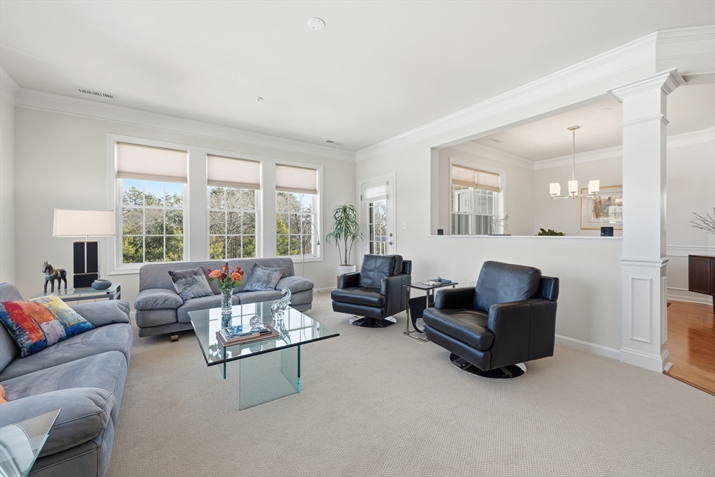 A rare opportunity to own a highly sought-after “A” style top-floor corner unit in South Natick Hills, offering ample natural lighting & serene woodland views from your private balcony. This beautifully maintained 2-bedroom features 2 full bathrooms w quartzite & quartz countertops, central air, a tankless water heater & a spacious primary suite w/ a large tub for relaxing. Impressive, high, & elegant tray ceilings enhance the extended foyer. The kitchen showcases stainless steel appliances, granite countertops & extended-height maple cabinetry. Classic wainscoting adds charm to the foyer & dining room, while detailed crown molding elevates the living and dining areas. The unit includes 1 deeded garage parking space w/storage & ample additional parking is conveniently located in front of the building. Ideally situated near the Natick train station, Route 9, shopping in Natick/Wellesley, & offering easy access for both eastbound/westbound commuters. Pet friendly.