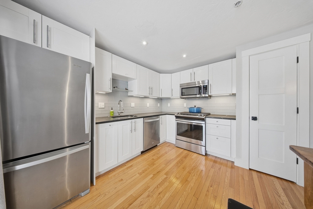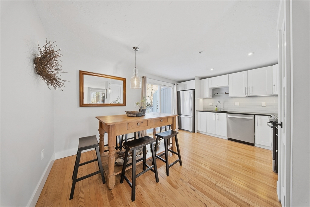 Completely updated, turnkey townhouse offering one of the nicest interiors at Pinecrest Village. This 2-bed, 1.5-bath home offers 1,160 square feet of well-designed living space, plus a finished lower-level area ideal for a media room, home office, or play space. The main level features an open living and dining area with hardwood floors throughout, leading into a fully renovated kitchen with shaker-style cabinets, tile backsplash, stainless steel appliances, and a gas range. A sliding glass door opens to a private rear deck. Both bathrooms have been tastefully updated with quality finishes, including tile flooring and a white tiled shower in the full bath. The second floor offers two large bedrooms and a bonus space ideal for a walk-in closet or additional storage. Recently replaced roof and composite deck, along with numerous high-end upgrades really set this home apart. Conveniently located just minutes from Lake Maspenock, I-495, Mass Pike and Hopkinton's highly-rated schools.