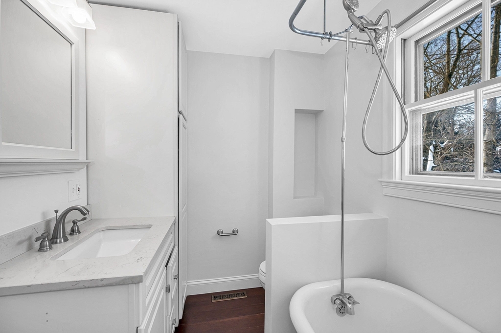 Meticulous 2-bedroom duplex available in a great Westford location. Bright and sunny best describes this spacious unit. Completely updated, freshly painted throughout, and awaiting its newest resident. The kitchen is beautiful & offers all SS appliances, and is open to the dining and living areas, offering a wonderful flow and perfect for entertaining. First floor full bath with clawfoot tub rounds out the main level. The 2nd floor offers a large 1/2 bath and two bedrooms. In the lower level, you will find a finished room (flex space, office, den, etc.), plenty of storage, and a washer & dryer. You have your own private driveway and access to the backyard. Shows beautifully, you would be proud to call this place home! This one looks nicer in person.
