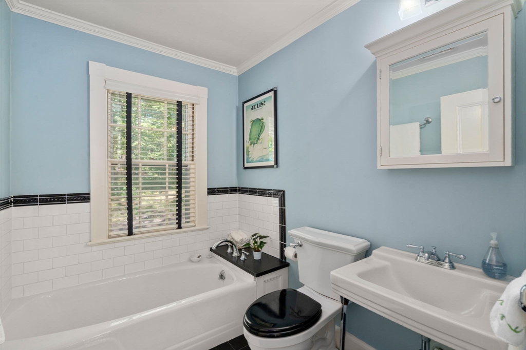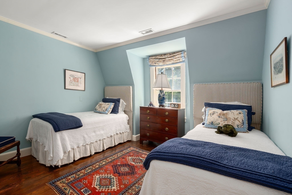 A rare and exceptional property on the south side of Weston. Set on over 2.5 acres of idyllic land, with expansive views of untouched meadows and abutting miles of forested trails, this historic home—originally part of the Hubbard Estate—has been masterfully restored by the renowned firm Dewing Schmid Kearns. The result is a harmonious blend of timeless character and modern elegance, just minutes from Boston and Wellesley shops. The home opens with a gracious foyer, featuring a barrel-vaulted ceiling and curved staircase. The magnificent living room boasts 10-foot ceilings, intricate crown molding, a welcoming fireplace, and French doors that lead to a sun-drenched bluestone terrace stretching the length of the house. The custom kitchen is fitted with cabinetry by Kochman Reidt + Haigh, known for exceptional craftsmanship. Just off the kitchen and adjoining study space, the family room features a fireplace and opens directly to the terrace, offering seamless indoor-outdoor living.