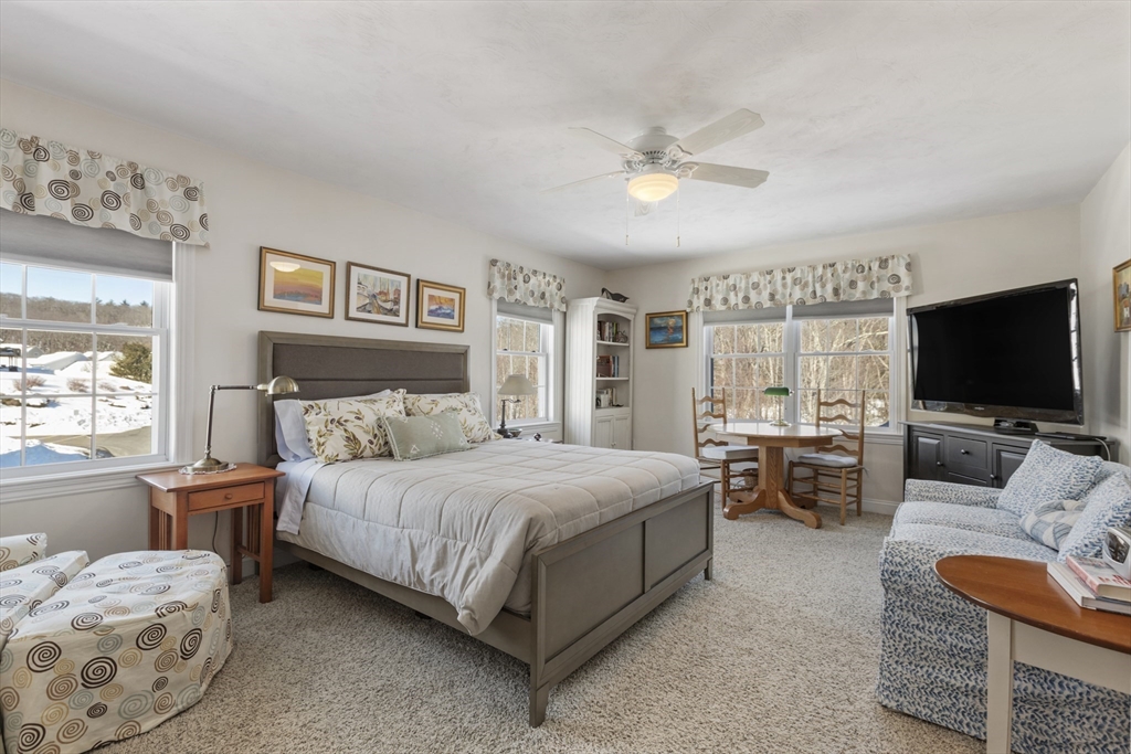 Just what you've been looking for! The open floor plan on the main level gives way for comfort and ease with great space to entertain. The cabinet packed kitchen has an island, pantry, plenty of counter space and a dining area. The adjacent slider goes to a composite deck with a beautiful view of the woods. The open living room has a gas fireplace and cathedral ceiling. First floor primary suite includes a large closet & bath with a walk-in shower. Plenty of space in this bedroom for a cozy sitting area. Upstairs includes another huge bedroom, full bath and loft area for office or relaxing. The large finished basement has a walk out and full bath. The open area has so much potential. Brierly Pond is a well established 55+ community with a wonderful Clubhouse that has activities and opportunities to rent. This complex is minutes from the Mass Pike, Route 146 and Route 290. Don't miss this opportunity as these units don't come along that often!