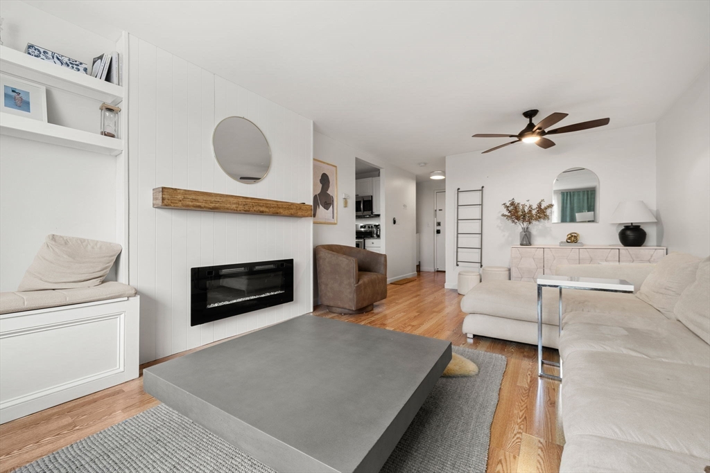 Top-floor condo with expansive skyline views in a convenient location central to Inman, Union & Harvard Square. The home has been beautifully cared for, with updates like a new electric fireplace, custom built-in storage, a window seat, modern ceiling fan light fixtures, updated stainless steel appliances, and Serena & Lily wallpaper. Hardwood floors throughout. An easy, light-filled, stylish space, with parking included, that’s truly move-in ready.