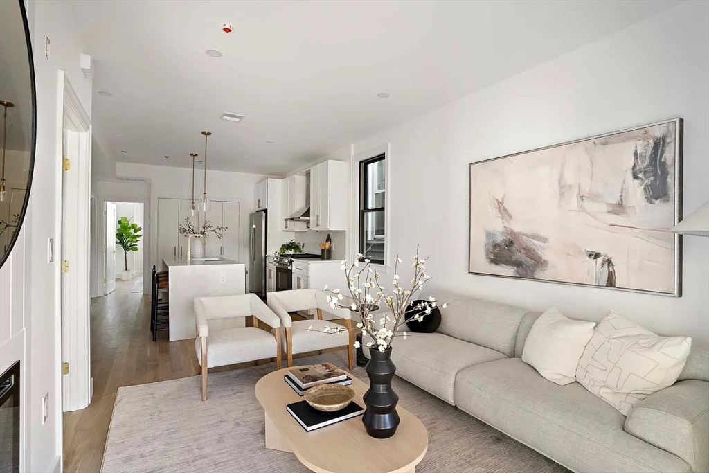 Be the first to live in this stunning, newly constructed 2 bedroom, 2 bathroom home in East Boston’s desirable Eagle Hill neighborhood. This thoughtfully designed apartment blends modern style and everyday comfort, featuring white oak hardwood floors, high ceilings, a cozy fireplace, and an open layout filled with natural light. The sleek kitchen showcases a spacious quartz waterfall island, perfect for cooking, gathering, and entertaining. Step out onto your expansive private deck off the living room, ideal for relaxing or hosting friends.The primary bathroom offers a spa-like retreat with a walk-in shower and high-end finishes, while central air, in-unit laundry, and a gas stove add modern convenience. Located just minutes from the MBTA Blue Line, downtown Boston, Logan Airport, parks, the Harborwalk, and great local dining. Available now. Tenant pays gas and electric. Don’t miss this rare opportunity to enjoy brand new living in one of East Boston’s best neighborhood