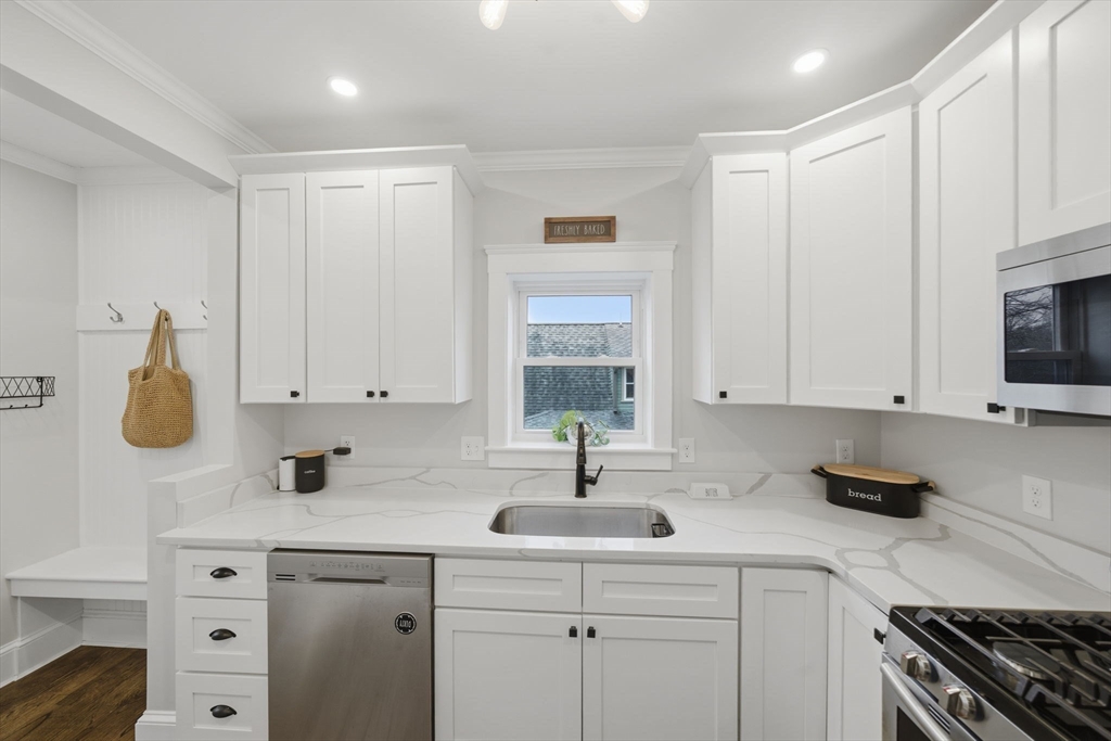 Perched on the top floor, this meticulously maintained penthouse-style condo blends comfort, charm & convenience. Ideally located within walking distance to the Readville Commuter Rail Station & just a 20-min ride to South Station, it offers easy city access while set in a family-friendly neighborhood near parks, playgrounds & tennis courts. The spacious layout features 2 generous bedrooms, 1.5 baths & a bright living room opening to a dining area w/ custom millwork bar—ideal for entertaining. The kitchen boasts quartz counters & ample cabinetry. Enjoy both a private front porch & back deck, perfect for outdoor relaxation. Outdoor enthusiasts will love being under a 5-min drive to Blue Hills Reservation w/ year-round hiking & seasonal skiing. Pride of ownership throughout. Additional highlights include in-unit laundry & 1 assigned parking space.