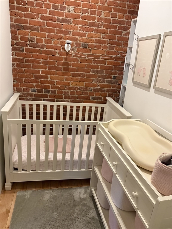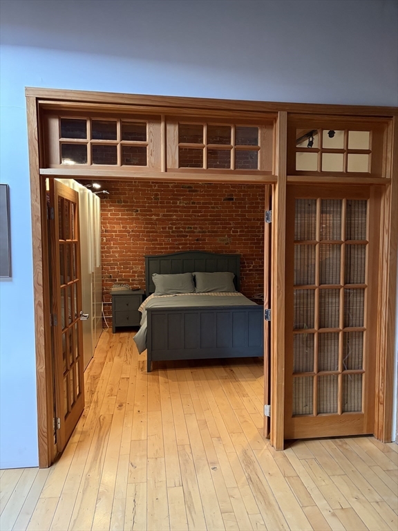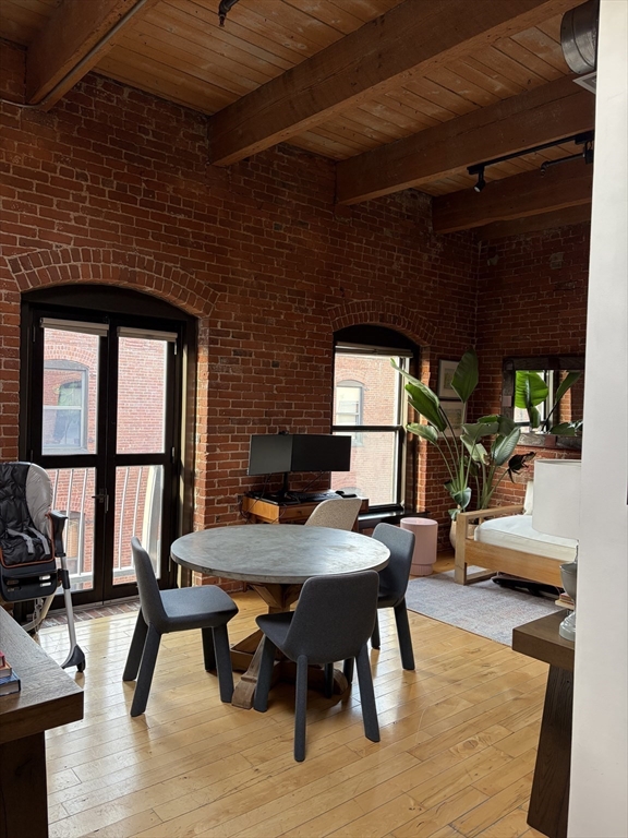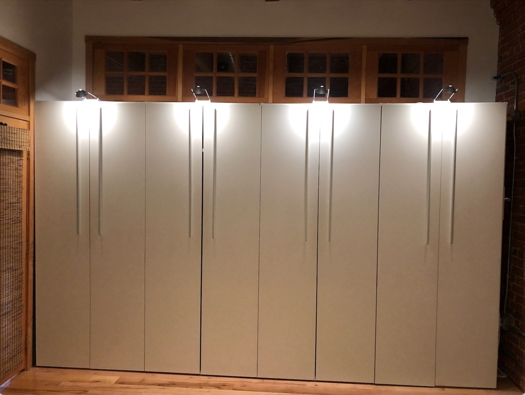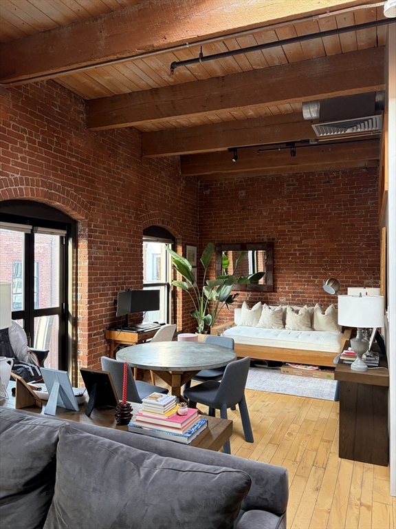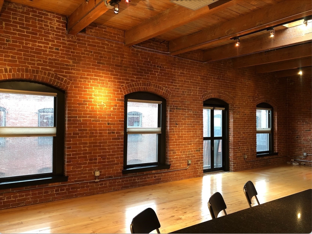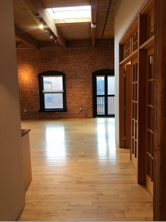 Stunning 1,054 SQ.FT top floor LOFT at the Fort Point Place Condominiums containing 114 Residential Loft Condominiums and located in one of Boston's most desirable places to live in the Seaport District. The unit has a flexible open plan, extensive architectural detailing including an 11 foot high ceiling; 2 walls of exposed brick and ceiling beams; beautiful wide plank maple hardwood floors. Drenched with afternoon sun via the west facing Juliette balcony doors, oversized windows and a ceiling skylight. The unit offers laundry-in-unit, central air, a modern granite kitchen counter and island with newer stainless steel appliances w/ gas range, a wine fridge and garbage disposal. A large closed off custom bedroom build-out allowing for complete privacy from the main loft living space and containing a walk-in-closet and wardrobe system. One full single assigned attached GARAGED PARKING SPACE is INCLUDED in the rent price. The tenant pays the gas & electric utilities.