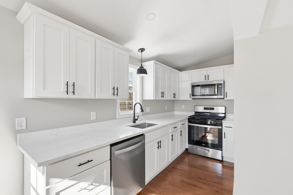 Fully renovated 3-bedroom, 2-bath home featuring beautiful hardwood floors throughout. The property offers a smaller, private backyard and an oversized detached garage, providing both privacy and functionality. A perfect blend of modern updates and everyday comfort!
