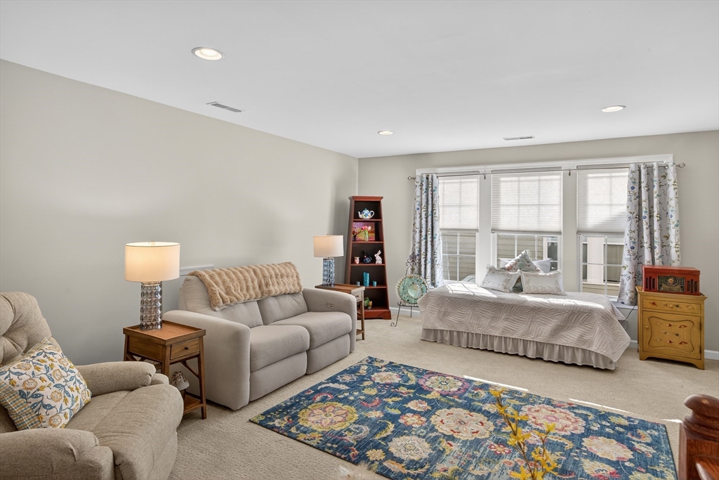 Stunning, freshly painted Pulte Blue Rock model home located in Kensington in the award winning Pinehills community. First floor open floor plan w/ gleaming hardwood floors + recessed lighting throughout kitchen, living and dining areas. Chefs' kitchen boasts high end stainless steel appliances, wall ovens and large granite island that overlooks the gathering room. Easy access to deck w/ composite decking overlooking a manageable back yard (mowed by HOA) + patio w/ gas firepit. First floor primary bedroom with walk in closet and primary bathroom. There is plenty of room for guests. A guest bedroom / office on the first floor, + 2nd full bath. Relax upstairs in the private loft with full bath + another large guest bedroom w/ walk in closet. Outdoor deck + patio great for entertaining. A mudroom w/ laundry off garage. HOA includes Stonebridge Club: outdoor pools, tennis courts, function rooms + gym, plus snow + trash removal. Custom window treatments + whole house generator included.