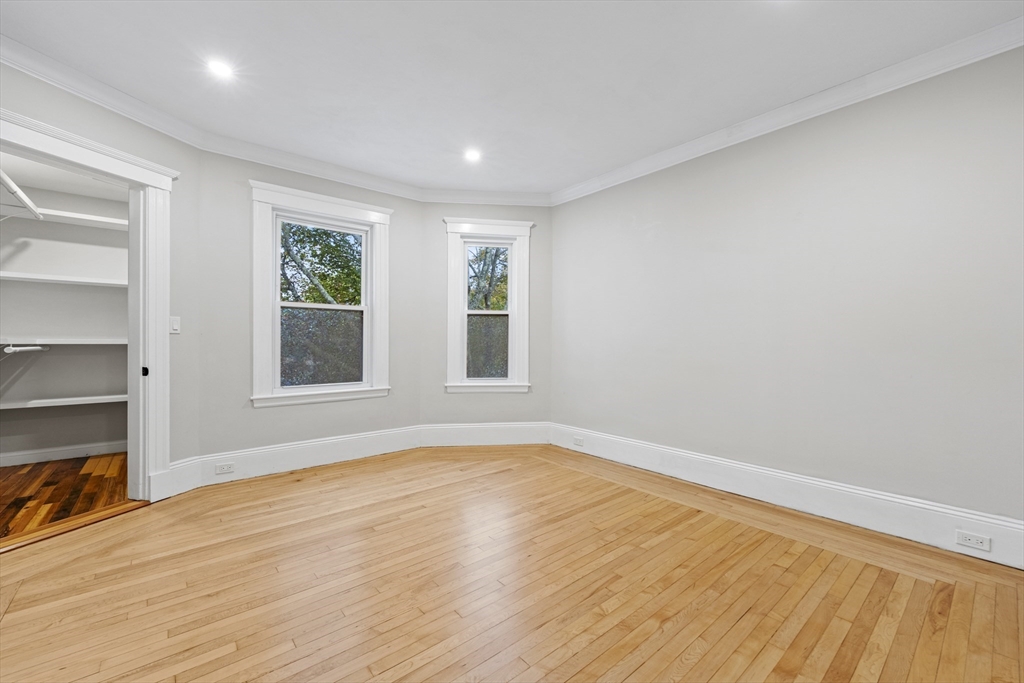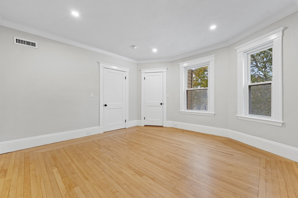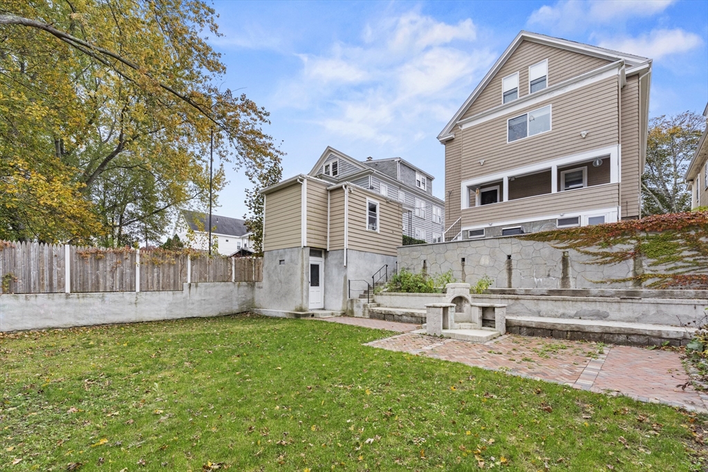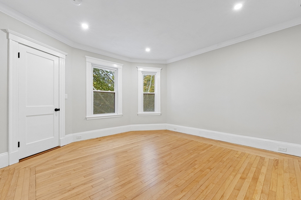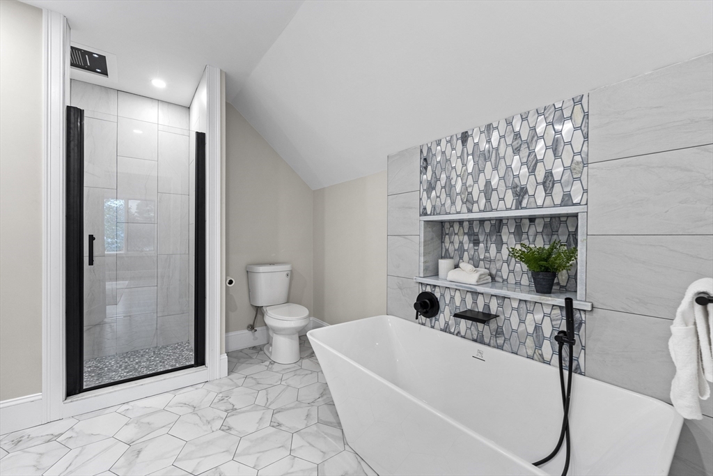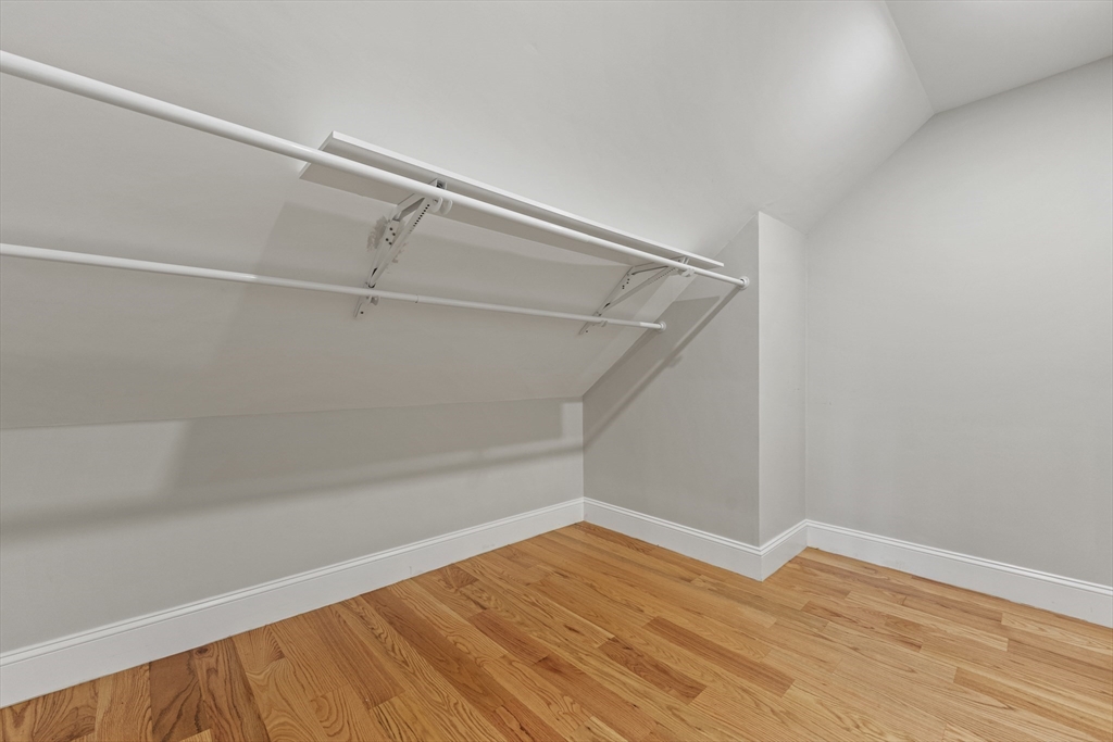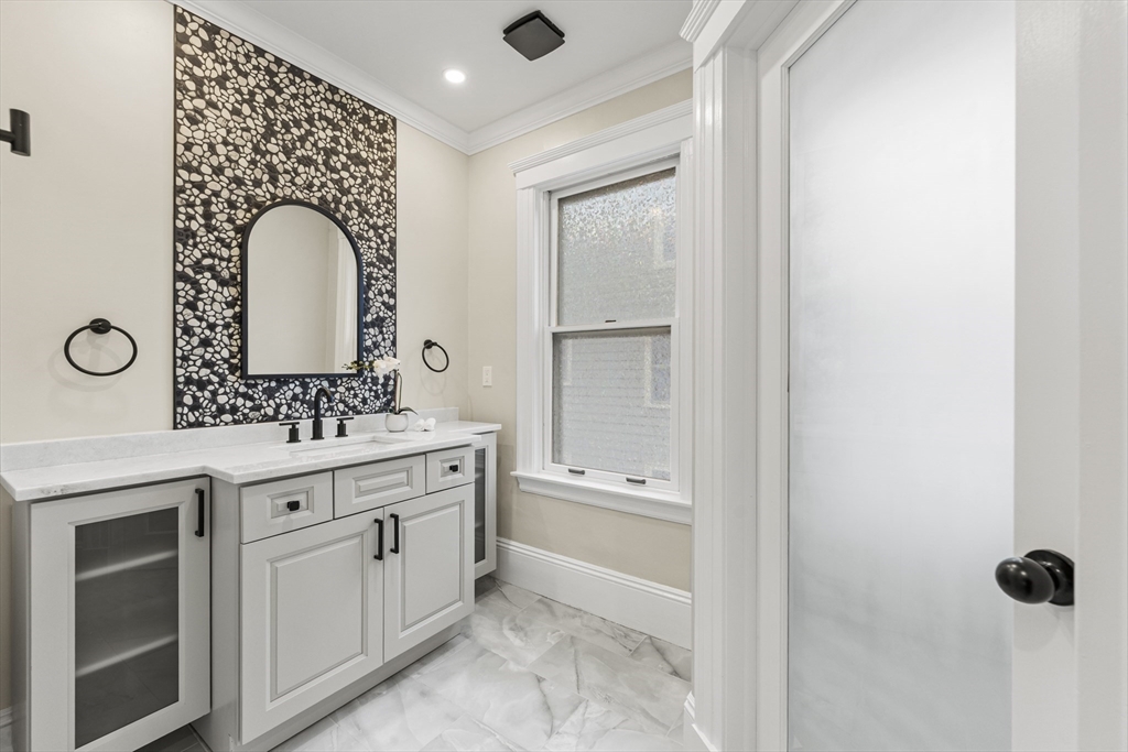 Beautifully designed three-level townhome-style condo offering a blend of modern finishes and thoughtful details throughout. The main floor features an open-concept kitchen and dining area with quartz counters, a 9' island, pot filler, pantry, and custom coffee bar. The second floor includes two spacious bedrooms, a bright office with French door, and a full bath with laundry and custom tilework. The third-floor primary suite offers a beamed cathedral ceiling, fireplace, beverage center, large dressing room, and spa-like bath with soaking tub, dual vanities, and separate shower. Enjoy a private porch, fenced yard with shared patio, and deeded off-street parking with garage. Conveniently located near downtown Salem, restaurants, the waterfront, and commuter rail.