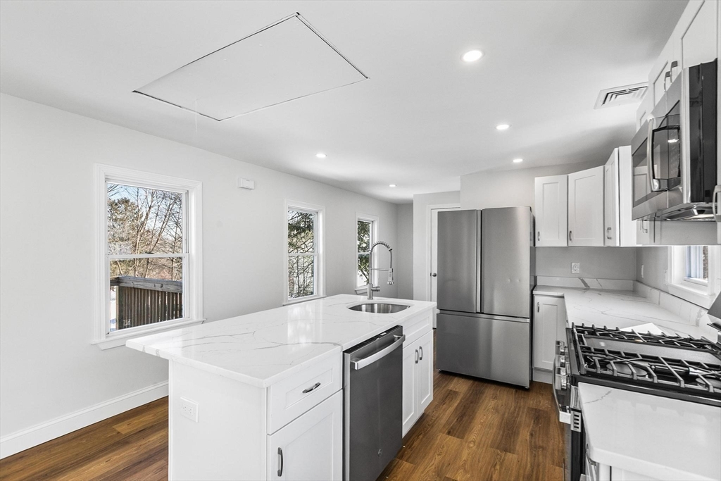 Welcome to this beautifully updated 2-bedroom, second-floor apartment featuring a completely renovated kitchen with granite countertops and brand-new stainless steel appliances. The unit also offers a renovated bathroom, new flooring throughout, and convenient in-unit laundry. Two off-street parking spaces are included. Ideally located close to shopping, dining, public transportation, and major highway access, this apartment offers both comfort and convenience. A great opportunity for commuters and those seeking modern finishes in a prime Saugus location.