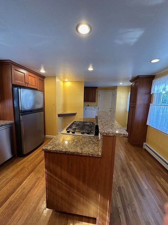 It is all about the location. This home needs work, but much of it has been done, including newer windows, newer kitchen and baths. Home being sold "AS IS" Gas boiler does not work (home currently not heated, water drained), has a crack in living room ceiling and needs a new septic. Home offers large living/dining room with fireplace, picture windows, slider to back yard and wood floors. Two good sized bedrooms each with double closet and wood floors, updated kitchen with gas countertop range, first floor laundry and one a half updated baths, basement for storage and two car garage. Sale price must be approved by MassHealth. Measurements are approximate and buyer is encouraged to verify at the property.
