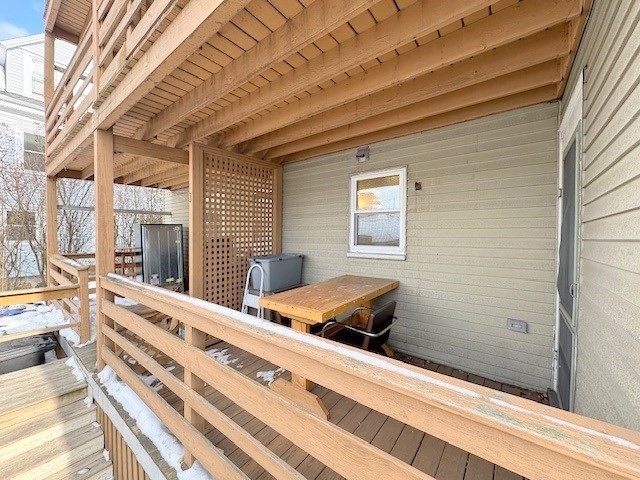 Available NOW or March 1st. Large, raised first floor, front-to-back apartment in Brighton Center. This unit offers an oversized layout (856 sf), INCLUDES GARAGE PARKING, has a private deck, private storage, + shared laundry in the basement. Located in the heart of Brighton Center, one block of off Washington Street, within close proximity to endless commerce, convenience, dining, & entertainment. There are three bus lines within one block; #501, #57, & #86. Quickly accessible to major roadways and large institutions. There is a large, front-facing living room w/bay windows, ornamental fireplace & mantle, high ceilings and hardwood floors. The living space can accommodate a large entertainment set-up and a work-from-home space. The bedroom is large enough for a king size bed, plus additional furniture. Bathroom was fully renovated in 2024. Eat-In-Kitchen is equipped w/dishwasher & disposal, gas cooking, and loads of cabinet & counter space. Private deck in the rear of the unit.