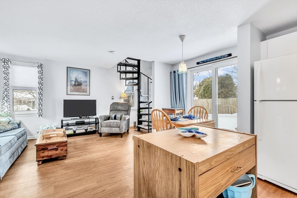 Welcome to this charming, year-round, two-level condominium, ideally located less than a mile from the beautiful shores of West Dennis Beach. Offering the perfect combination of comfort, flexibility, and coastal convenience, this property is well-suited as a primary residence, vacation retreat, or investment opportunity.The first level features an inviting open floor plan designed for easy entertaining and relaxed everyday living, while the second floor offers a spacious bedroom enhanced by two skylights that fill the space with natural light, along with a sliding door leading to a private deck. This level also includes a full bath and the added convenience of an in-unit stackable washer and dryer.Outdoor amenities include a partially fenced backyard, two storage sheds, and immediate proximity to the association pool—perfect for enjoying warm Cape Cod days. This property presents an exceptional opportunity to enjoy effortless year-round living or the perfect coastal getaway.