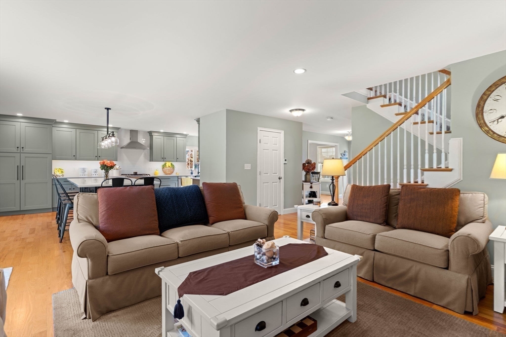 This intentionally designed and meticulously maintained home offers an open, functional layout with quality finishes and hardwood floors throughout. The recently remodeled kitchen features thoughtful updates and an oversized island, and flows seamlessly into the open-concept living room with fireplace—ideal for everyday living and entertaining. A dining room, perfect for gatherings both casual and formal, along with a home office and half bath, complete the first floor. Upstairs, the spacious primary suite features a private bath and walk-in closet, complemented by two additional bedrooms and a second full bath. The lower-level entry through the garage leads to a well-designed mudroom. Set on just under an acre in a quiet cul-de-sac, the landscaped yard offers a peaceful, private setting with a spacious backyard, patio area, fire pit, shed, and irrigation system. Conveniently located near shopping, dining, and everyday amenities, with easy access to I-495 and I-95.