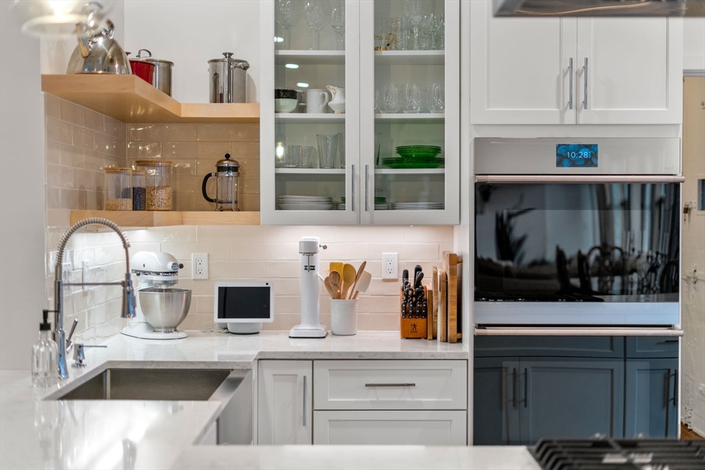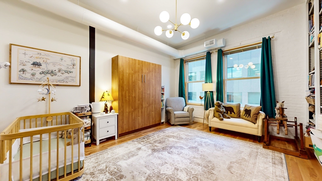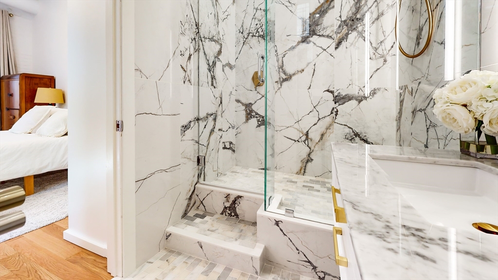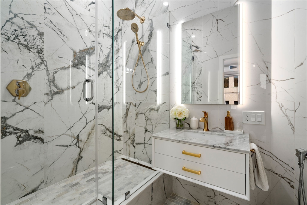 Welcome to this meticulously fully renovated home in Boston's vibrant waterfront neighborhood. This prime location top floor 2+ bed residence w/ an additional guest/office bonus room, offers modern elegance and classic loft charm. Open living, dining, and kitchen area w/ oversized windows, soaring 11' ceilings, white oak hardwood floors and marble net zero fireplace is ideal for entertaining guest or a quiet evening at home. The spacious kitchen includes double ovens, quartz countertops, beverage refrigerator, hansgrohe fixtures & exterior vented hood. The luxurious master suite boasts 2 walls of windows, ample closet space and a serene quartz ensuite bathroom. There are two additional well-appointed bedrooms/home office spaces. New 5 ton HVAC system & tankless water heating system. Prime location in the heart of the waterfront & financial districts, w/ easy access to dining, shopping & entertainment. Walk to the Seaport, North End and Beacon Hill. Steps to the Greenway & Boston Harbor