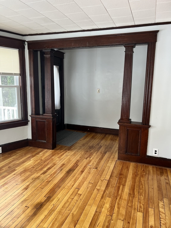 Great opportunity to live in the Library District! This 1st floor unit has lots of charm and space. Comes with NEW appliances: washer/dryer, range, refrigerator (about 12 yrs old). Natural gas heat. Lots of hardwood and architectural detail with built in cabinets and nooks. Good size bedrooms with hardwood flooring. Use of front covered porch. Plenty of off-street parking. Rent includes water and sewer, snow removal, lawn maintenance. Tenant responsible for electric and heat. NO SMOKING AND NO PETS- no exceptions.. Close to shopping, schools and downtown. First, and Security deposit required. Credit check, background check and references required as part of application process.
