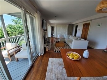 Amazing Location!! Sun drenched 2 bedroom unit. Large open living space with working fire place and spectacular views from multiple sliding glass doors leading to a large cozy deck. Hardwood thru out, central air, newly renovated galley kitchen with granite and stainless steel. 2 large bedrooms with good closet space. Laundry in unit and additional storage space in the basement.