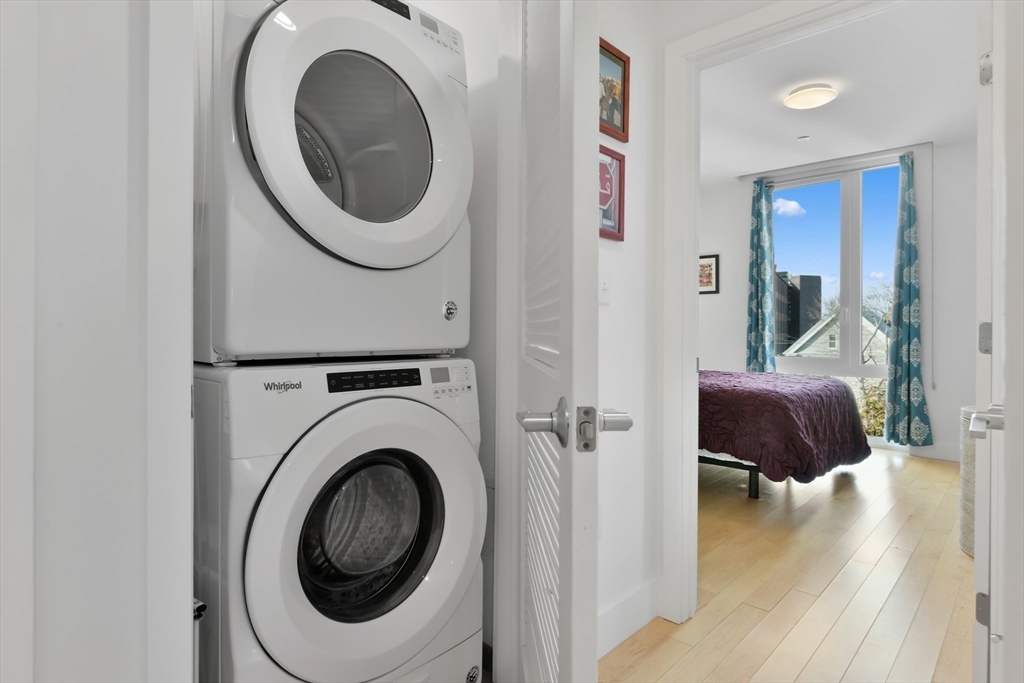 This stylish and well-appointed 1 bedroom condo in Saint James Place is ideally located in convenient and desirable Porter Square. The unit itself provides generous open space and is equipped with high-end appliances and a gas fireplace. Energy-efficient building materials and thoughtful design earned a LEED silver certification from the city of Cambridge. Features like triple-pane glass and french doors add to the tranquility and seclusion felt inside the home. Complete with in-unit laundry, extra storage in the garage, storage/utility closet in the hallway, and an assigned deeded parking space, this unit has everything you need to be comfortable in one of the country's best cities to live. Saint James Place, built in 2021, is renowned for its architecture and design and revered by residents as a wonderful place to live where community members are actively engaged in the successful management of the property.