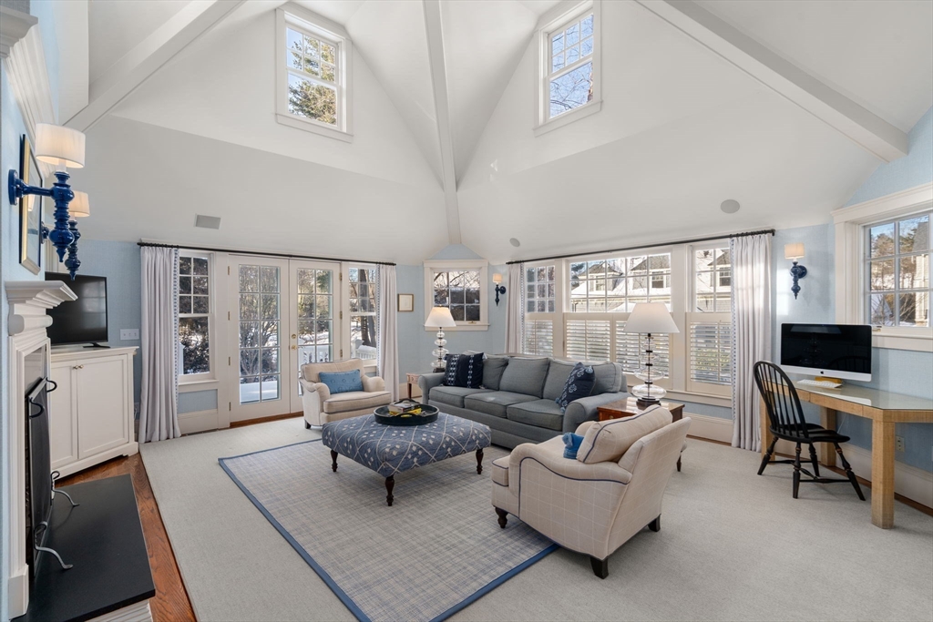 Prime Country Club location! Very special home with high ceilings, sunlight and an ideal layout on one of Wellesley's favorite streets. Enter through welcoming front porch. Oversized Living room with fireplace and built-ins. Dining room with custom wood cabinetry. Back of home is open concept with updated kitchen, casual dining, large island and family room with another fireplace and picture windows. 2nd floor with main bedroom, double closets with full bath. 2 additional beds/ full bath & laundry plus a home office. Third floor with 2 more bedrooms/full bathroom and cedar closet plus storage. Lower level with large mudroom room, playroom, full bath, climate controlled wine room and a gift wrapping station. Lower level also includes hostess kitchen with fridge, freezer and dishwasher. Greenhouse for the cultivating enthusiast. Brick patio and large flat yard. Super close to Brook Path, Phillips Park, Wellesley Hills train, Quebrada and Cafe Nero. Move right in and enjoy!