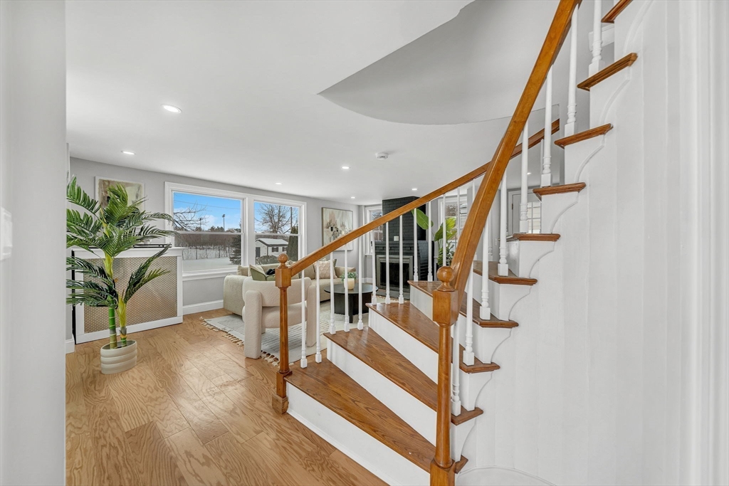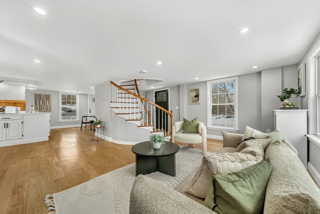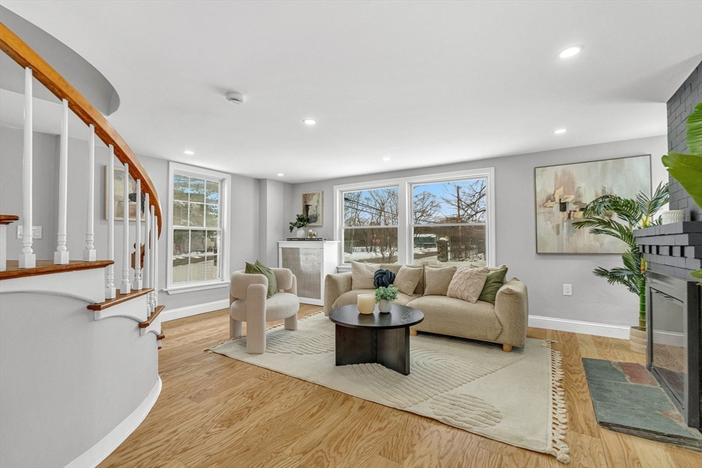 Thoughtfully updated, this 1900 home blends timeless charm with modern convenience and Set on a level .48 acre. It features a spiral staircase leading into an open concept Kitchen, Dining Room and Living Room with a large wood burning fireplace as the focal point. The flexible layout offers up to 4 bedrooms and 2 full baths. Two enclosed porches surrounded by windows and plenty of light. Just 0.3 miles to Hudson High school and minutes to downtown Hudson shops and restaurants as well as Route 495. The spacious yard includes an outbuilding- perfect for storage. With historic character and generous living space, this home is ready to enjoy.