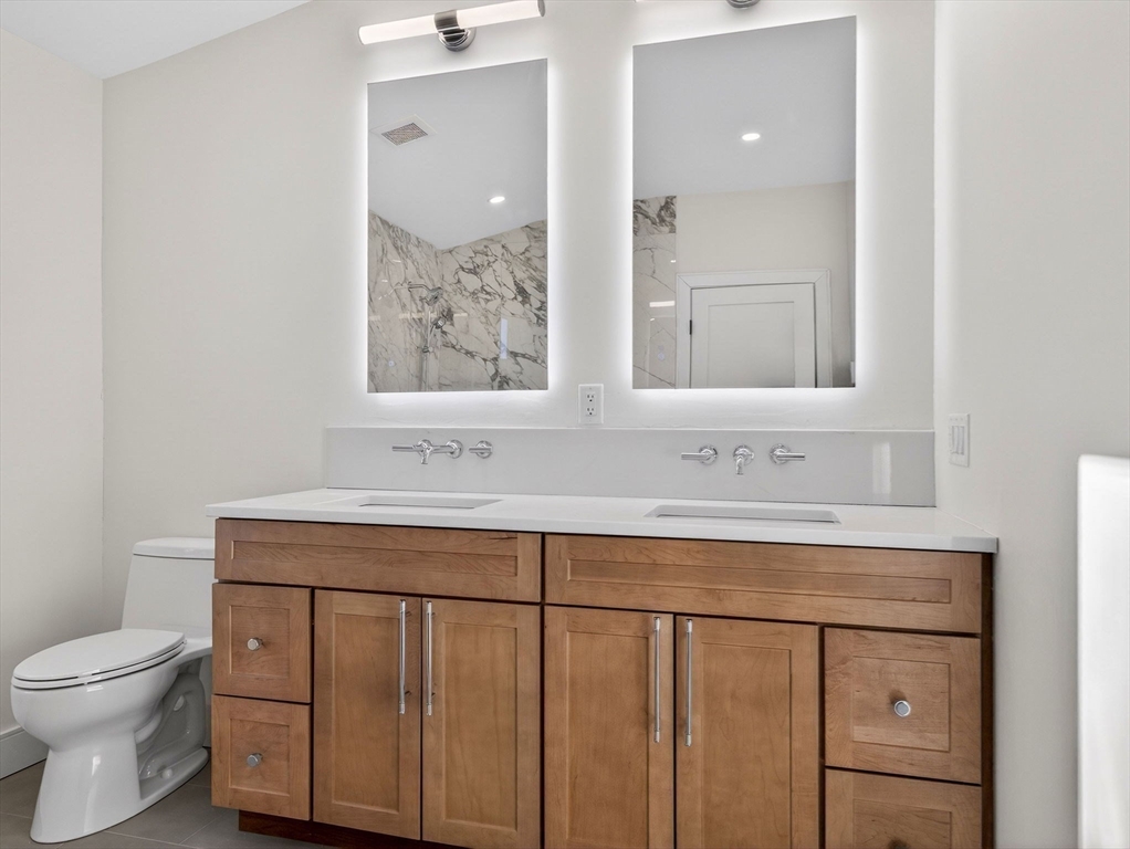 Welcome to sophisticated modern living in Roslindale Village: a meticulously crafted tri-level townhouse where contemporary design meets everyday comfort. This 4-bedroom, 2.5-bath residence showcases new construction with an intelligently designed layout. Sunlight pours through the main level's soaring ceilings, illuminating a gourmet kitchen appointed with custom cabinetry, quartz countertops, and premium fixtures. The kitchen, dining, and living spaces flow together effortlessly, creating an ideal setting for entertaining and daily life. Upstairs, the primary retreat features a spa-inspired en-suite with radiant heated floors, walk-in closet space, and a balcony. Three additional bedrooms offer versatility for family, guests, or your workspace. The location rivals the home itself: the Arnold Arboretum's landscapes begin where your street ends, the commuter rail connects you to downtown in minutes, and Roslindale's celebrated dining scene feels like an extension of your home.