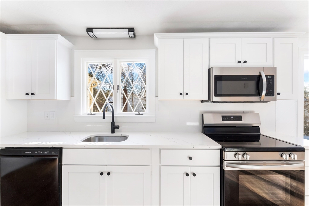 Welcome to this beautifully updated, move-in-ready Ranch offering timeless style, thoughtful upgrades, and effortless living. The inviting Living Room features a classic fireplace with raised hearth, creating a warm focal point, while the bright new white Kitchen impresses with quartz countertops, updated appliances, and a spacious Dining area ideal for everyday living or entertaining. The main level includes three comfortable Bedrooms, an updated full Bathroom, and a heated Sunroom overlooking a private backyard retreat. The finished lower level expands your living space with a generous Family Room featuring new LVP flooring, built-in storage, laundry area, walk-in storage, and workshop space. Set on a quiet dead-end street with easy access to commuter routes, shopping, and local amenities. Recent upgrades throughout make this a true turnkey opportunity — simply move in and enjoy.